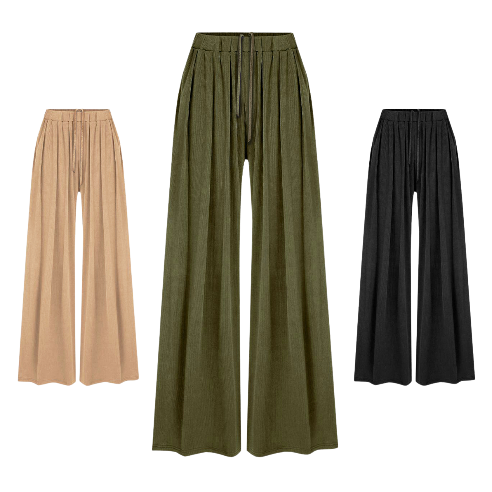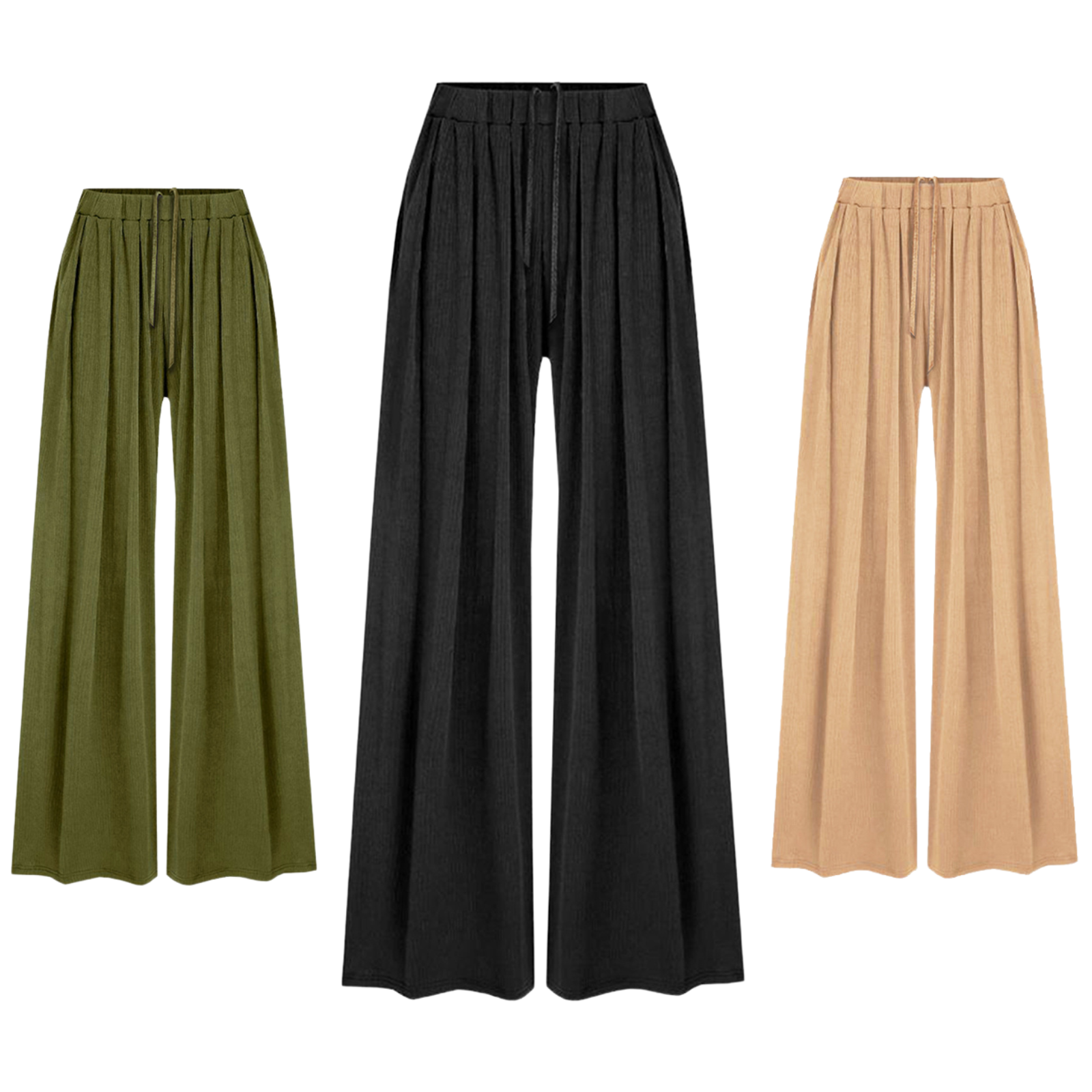 Women's 2-Piece Ribbed Knit Lounge Set-Long Sleeve Crop Top&Wide Leg Pants