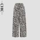 Black Zebra Abstract Print Wide-Leg Drawstring Palazzo Pleated Pants