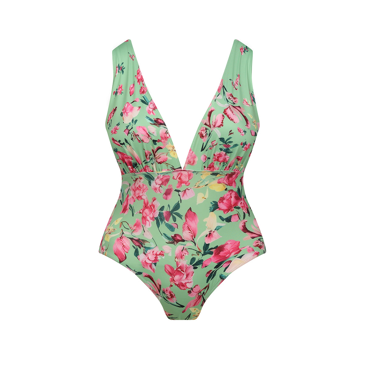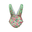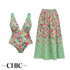Mint Green & Pink Florals One-Piece Swimsuit&Skirt