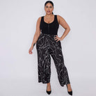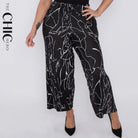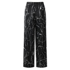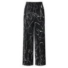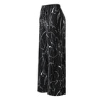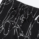 Black Line Art Abstract Print Wide-Leg Drawstring Palazzo Pleated Pants