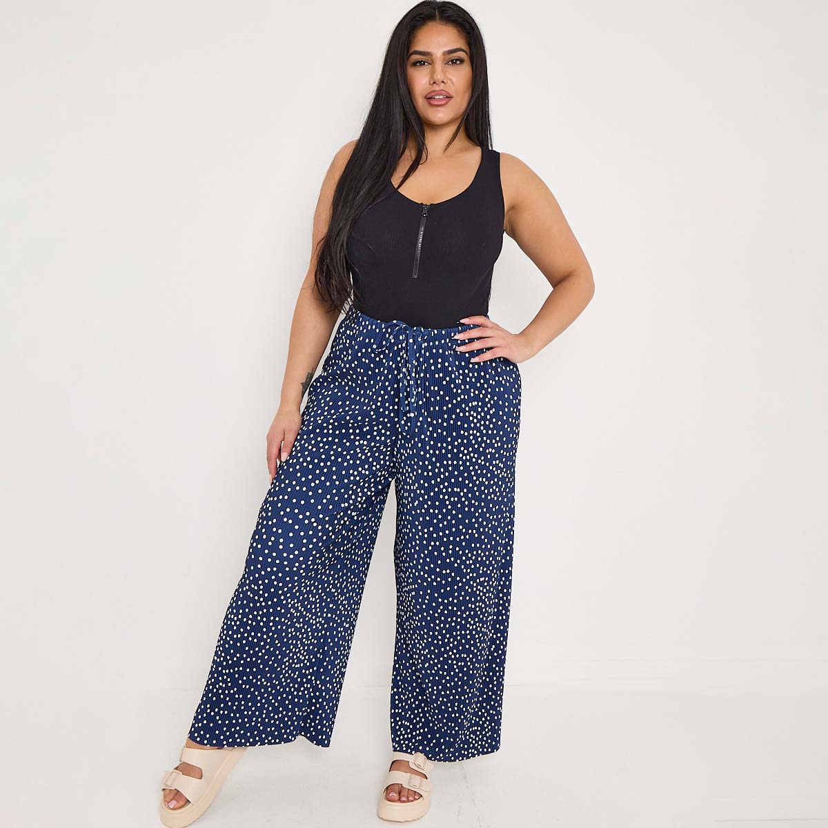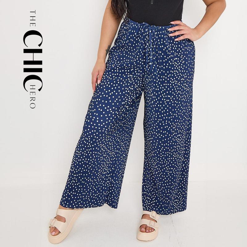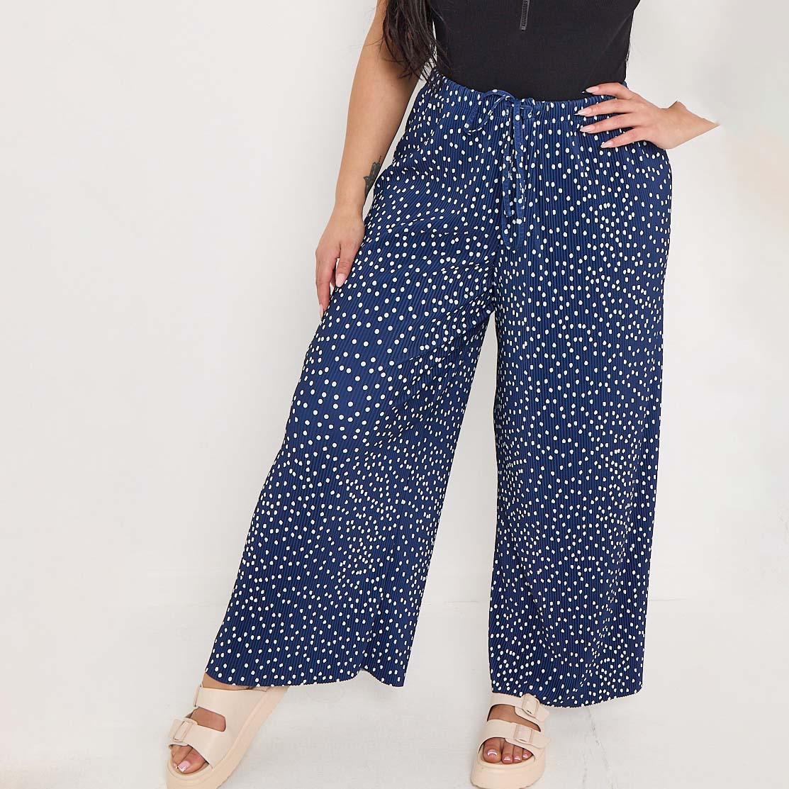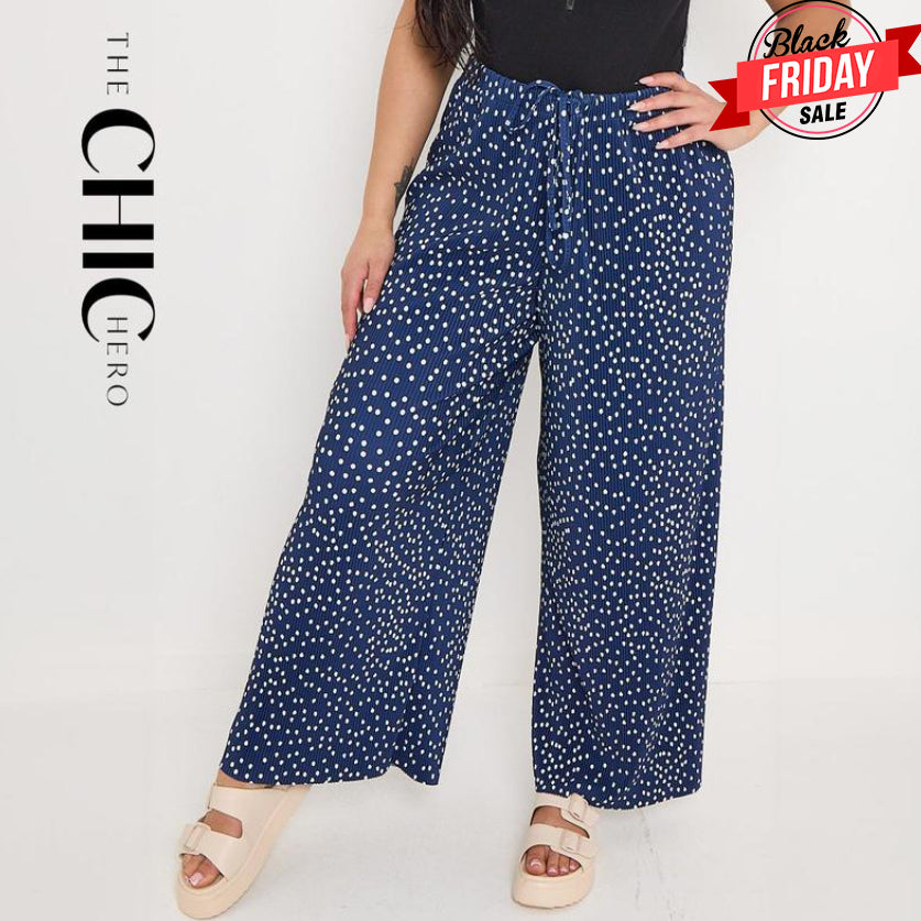 Blue Color Wide-Leg Drawstring Palazzo Pleated Pants