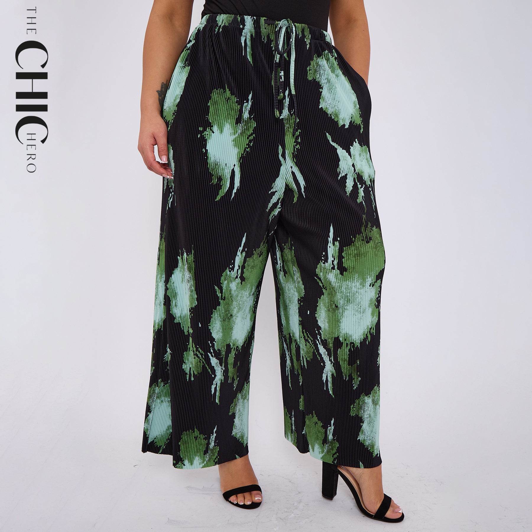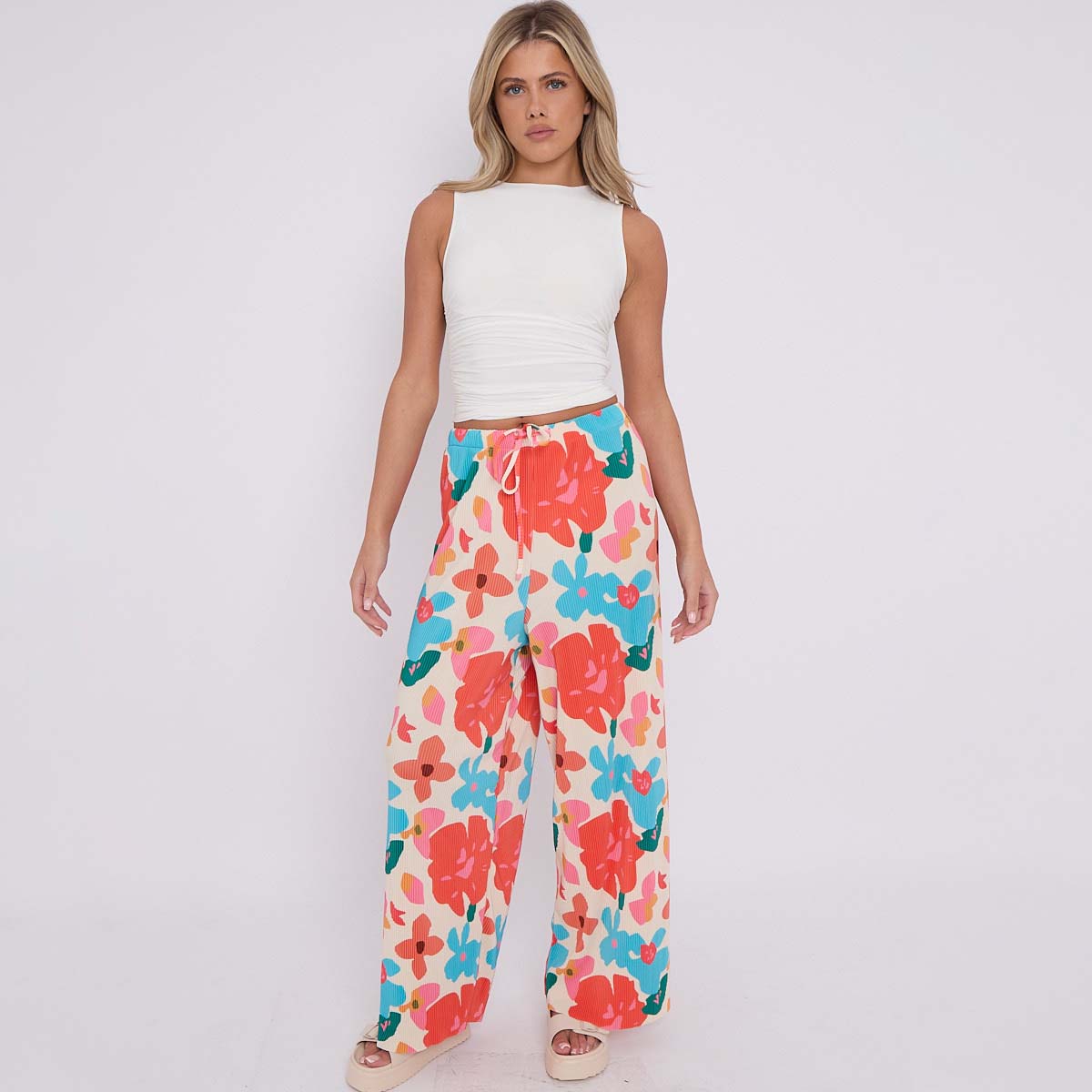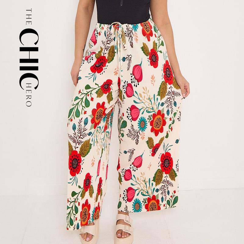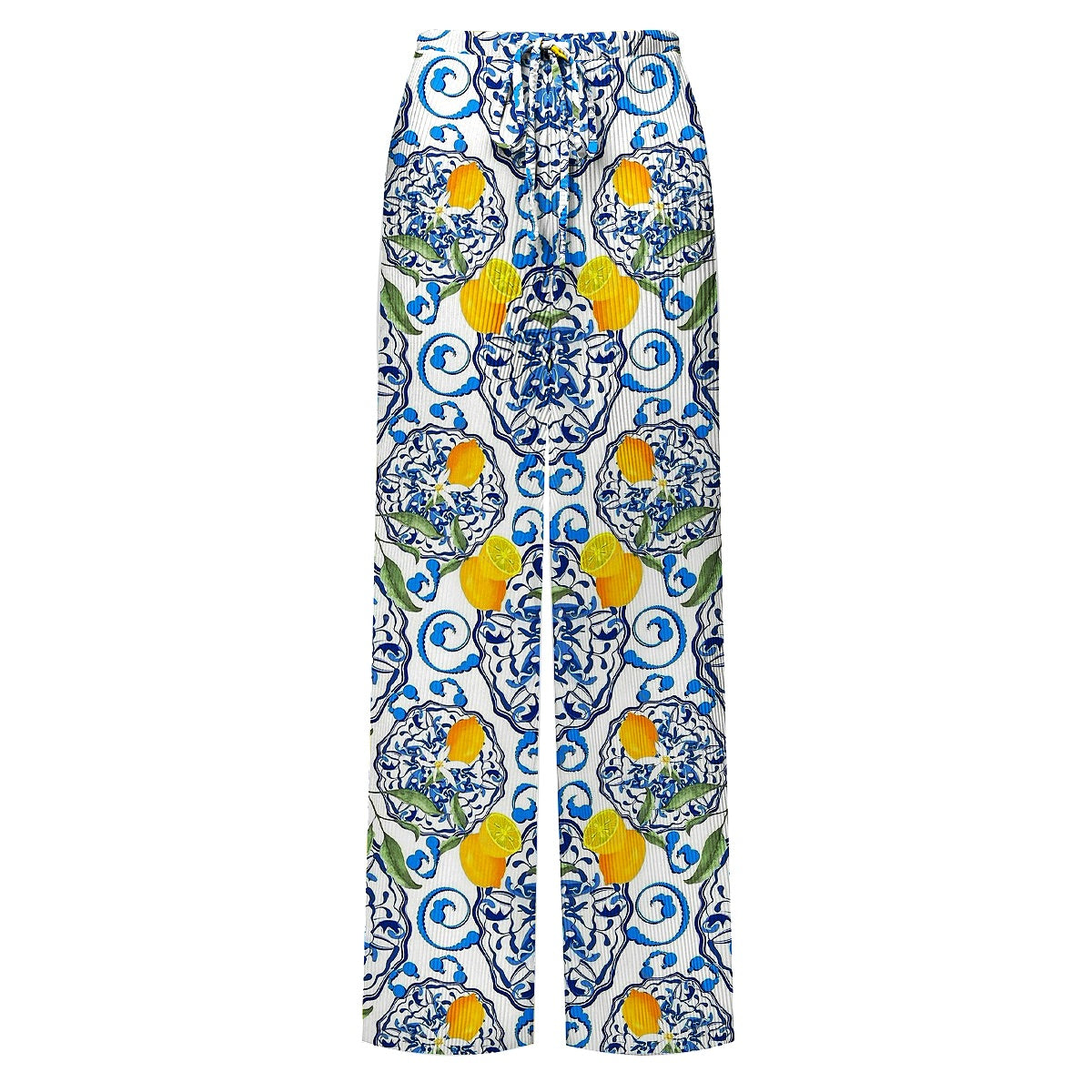 Blue Color Wide-Leg Drawstring Palazzo Pleated Pants