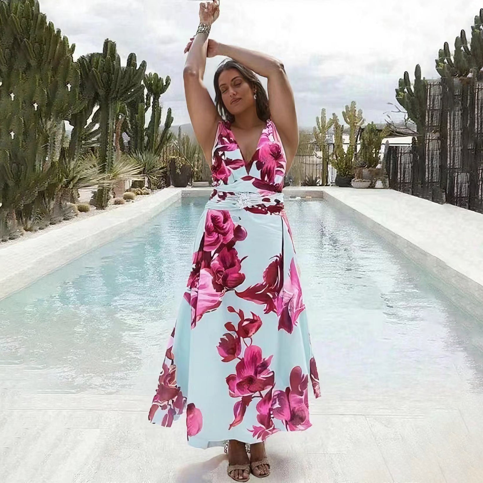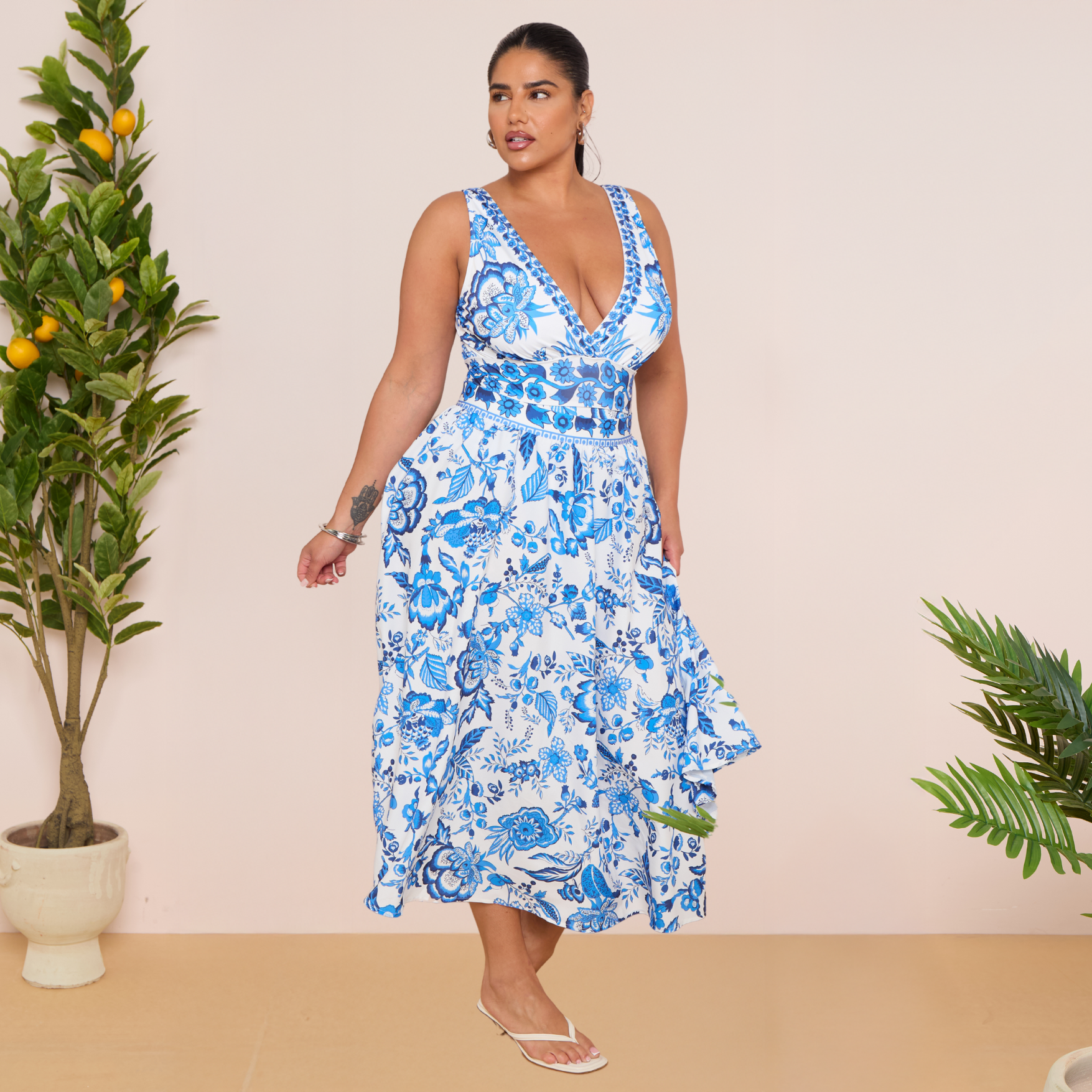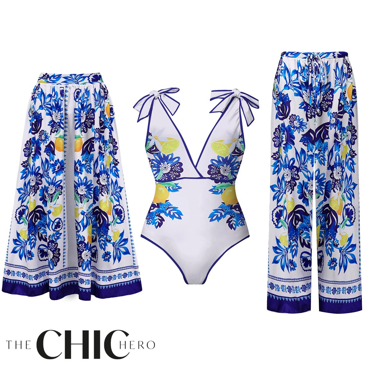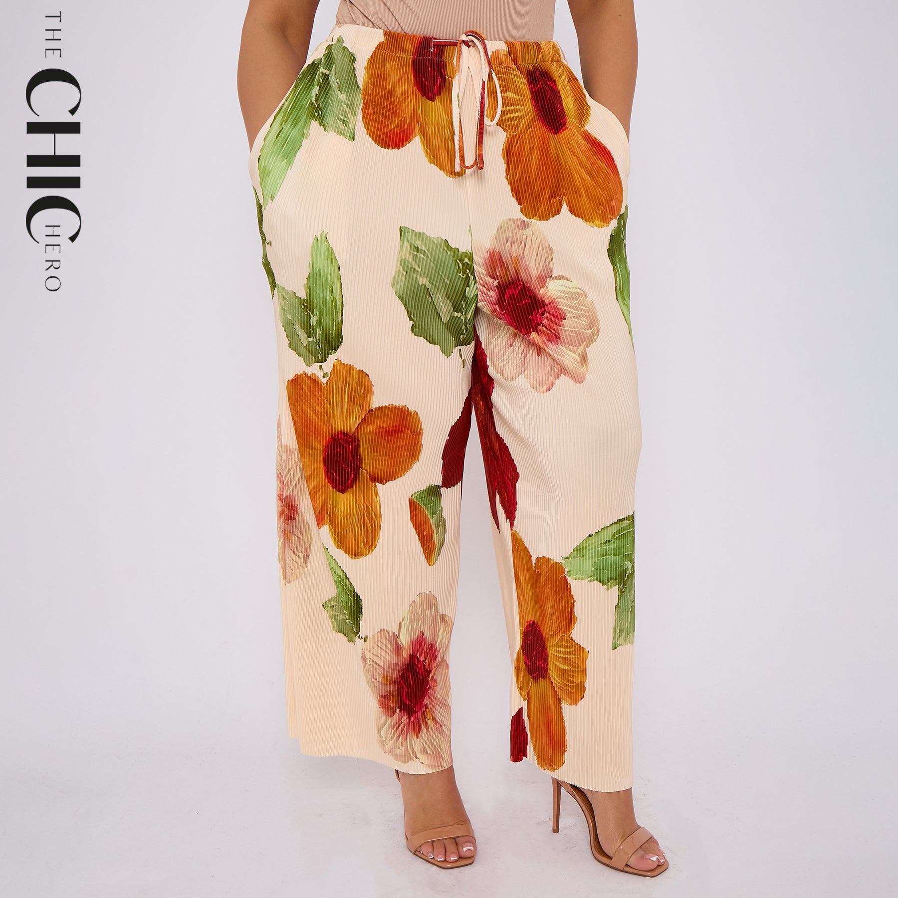 Blue Color Wide-Leg Drawstring Palazzo Pleated Pants