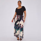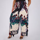 Red Rose Flower Abstract Print Palazzo Pleated Pants With Pockets