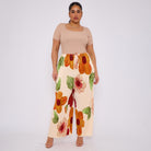 Abstract Floral Wide-Leg Drawstring Pleated Trousers With Pockets