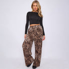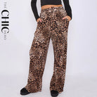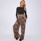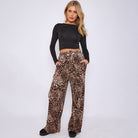 Brown Leopard Wide-Leg Drawstring Pants With Pockets