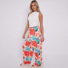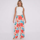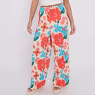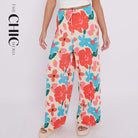 Rose Flower Print Abstract Wide-Leg Drawstring Palazzo Pleated Pants