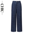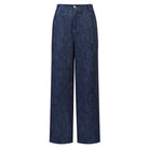 Dark Blue High-Waisted Light Wash Wide-Leg Denim Pants