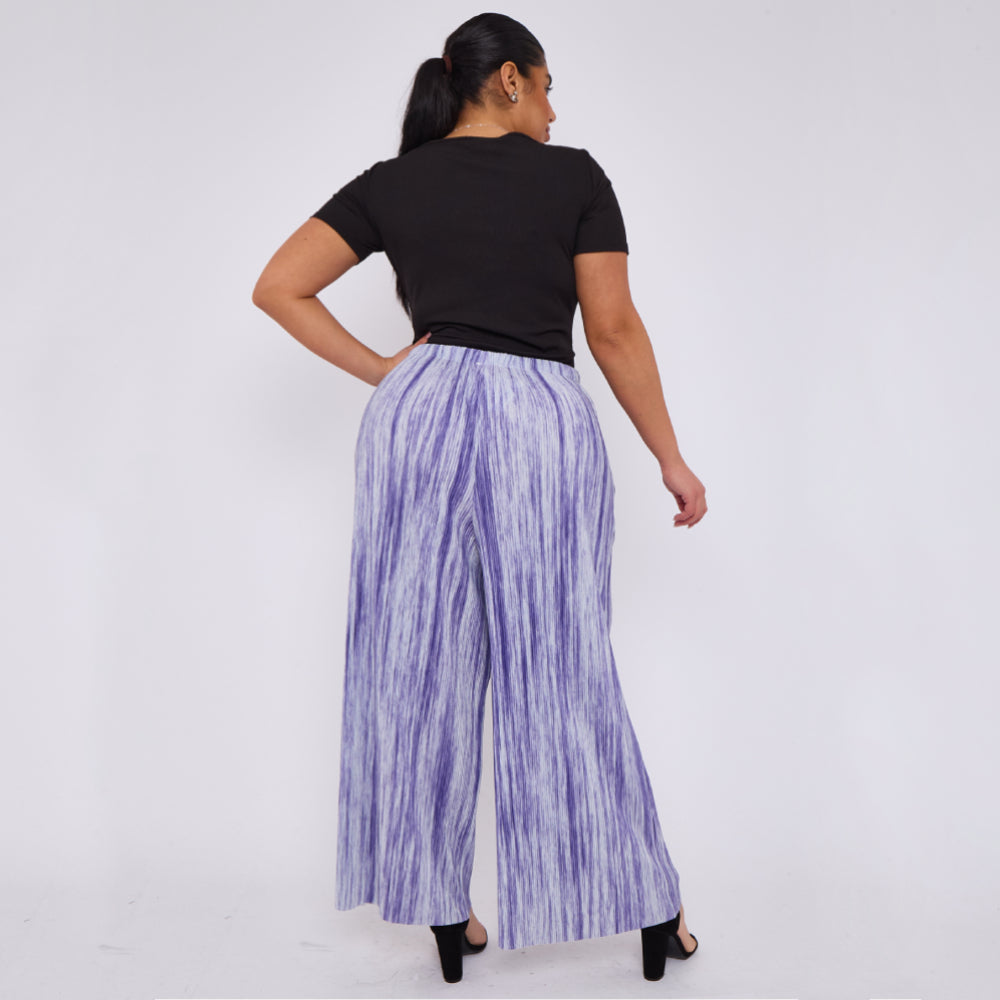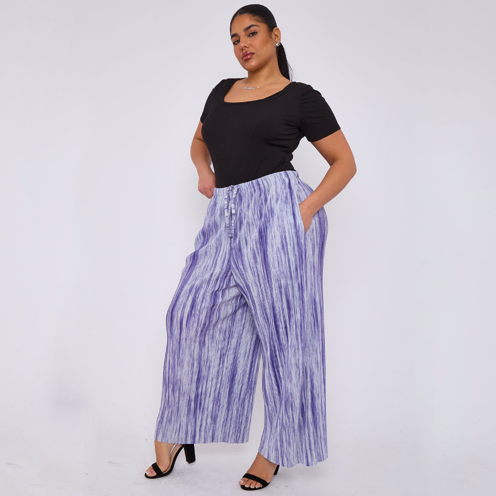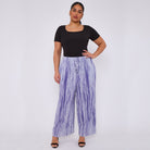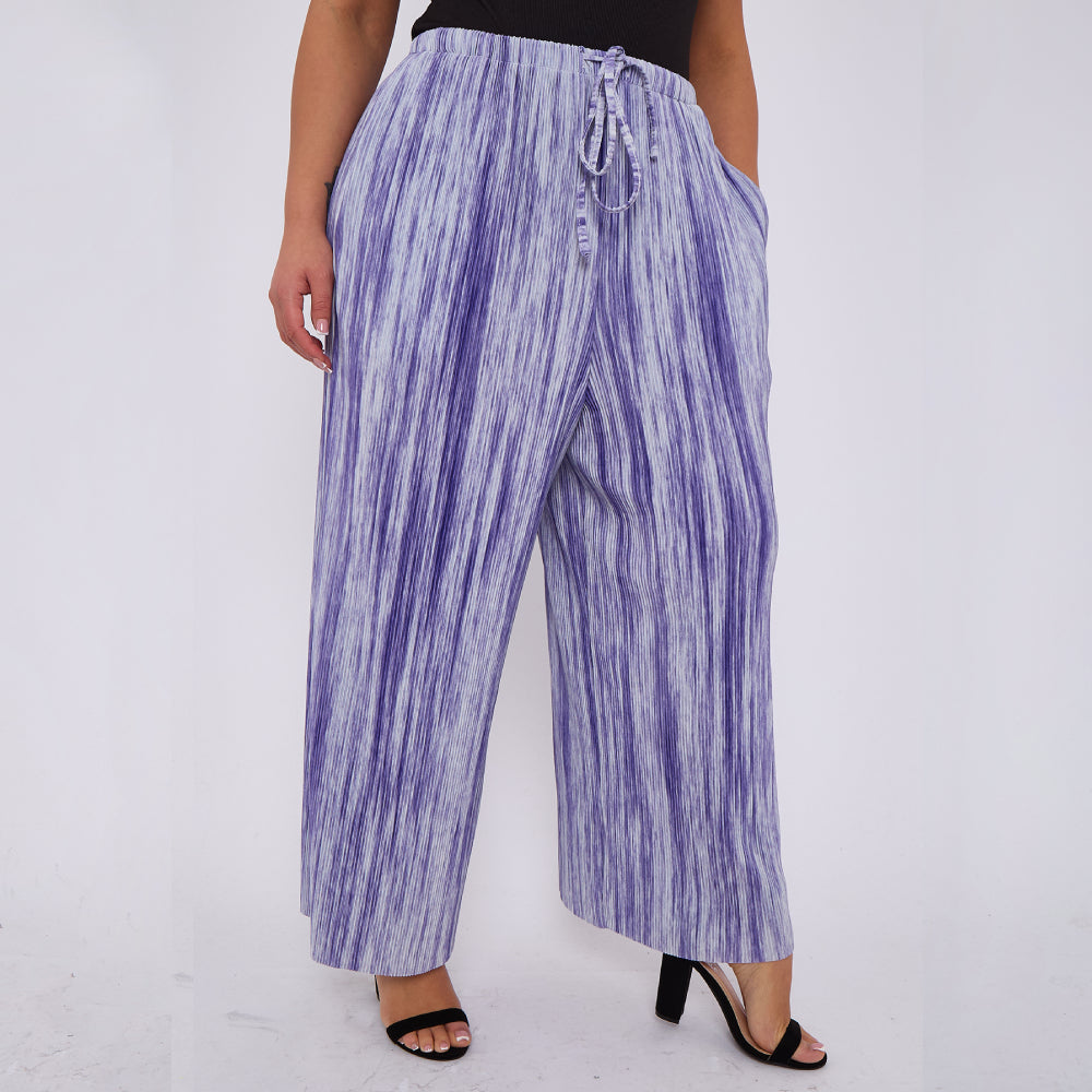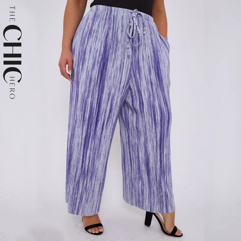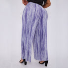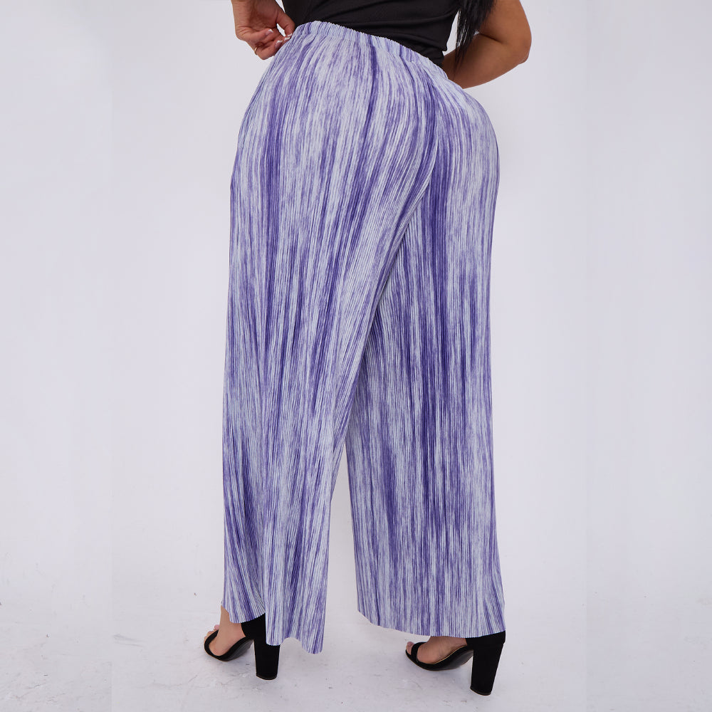 Purple Abstract Geometric Printed Stretchy Pleated Trousers for Women With Pockets