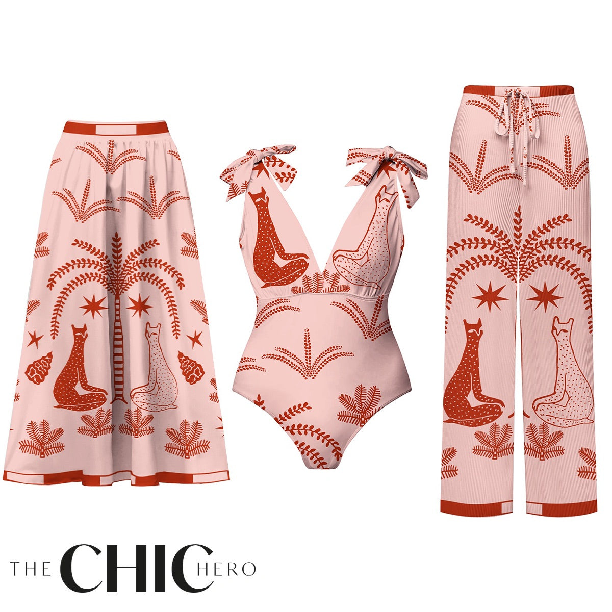 Boho Safari Animal & Palm Tree One-Piece Swimsuit&Skirt&Pants