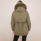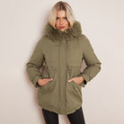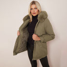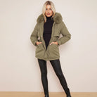 Army Green Chic Parka Faux Fur Hood Puffer Jacket with Fur Collar