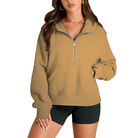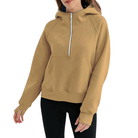 Beige Half-Zip Hooded Pocket Loose Sweatshirt