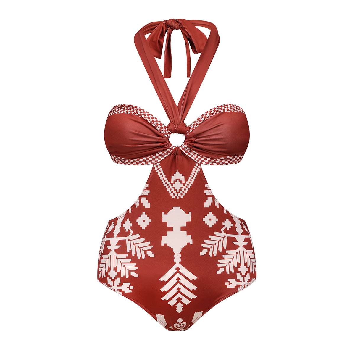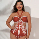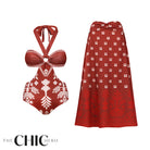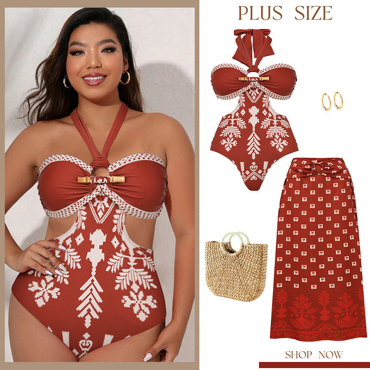 Boho Ethnic Floral Patterned Halter One-Piece Swimsuit&Skirt