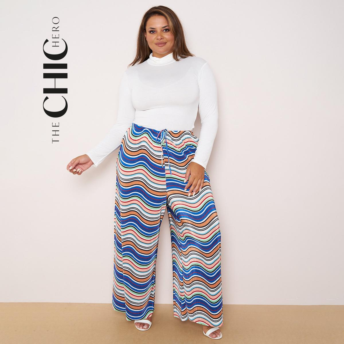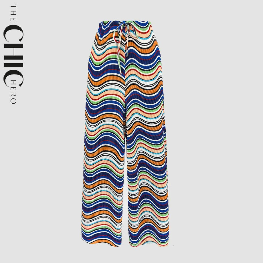 ChicHero Multi Abstract Print Wide-Leg Drawstring Palazzo Pleated Pants