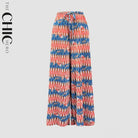 Curve Pattern Abstract Print Wide-Leg Drawstring Palazzo Pleated Pants