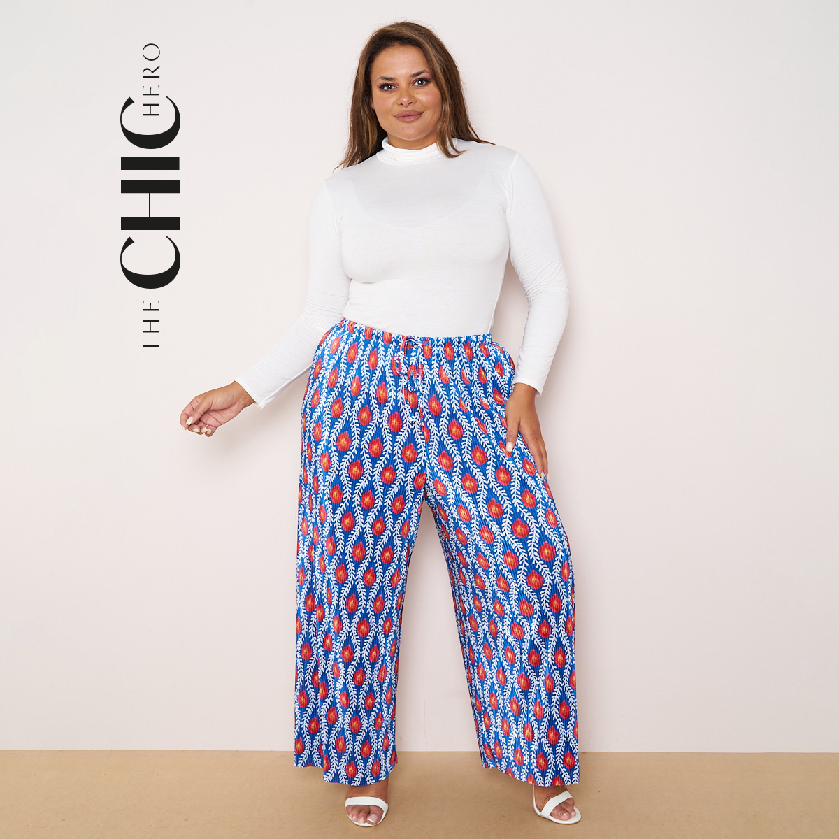 Blue Flame Abstract Print Wide-Leg Drawstring Palazzo Pleated Pants