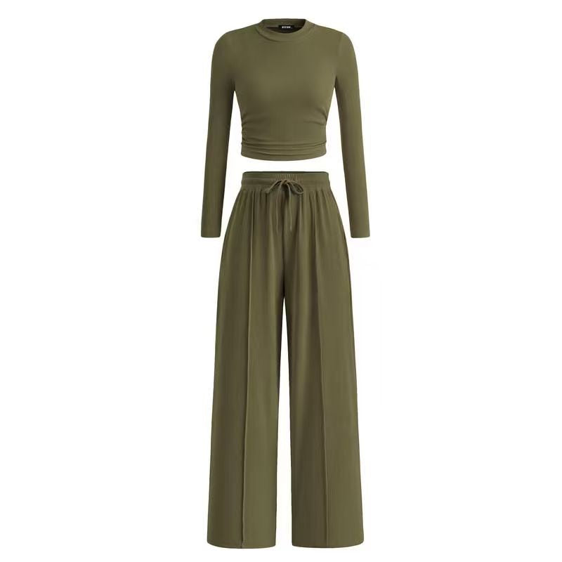 Colorful Floral Embroidery Drawstring Trousers Pleated Pants