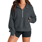 Dark Grey Half-Zip Hooded Pocket Loose Sweatshirt