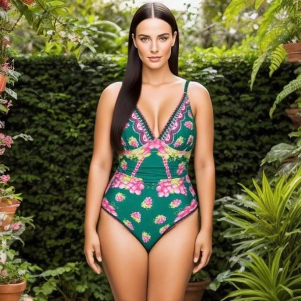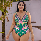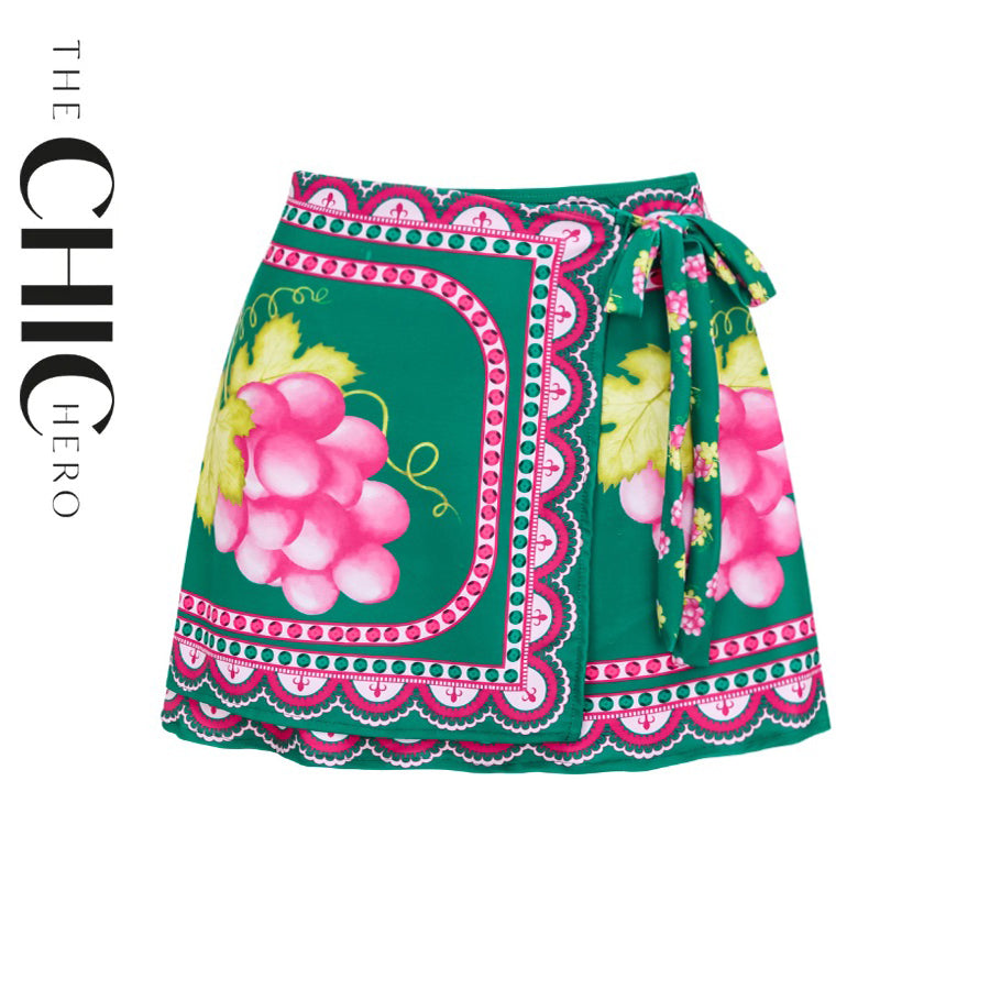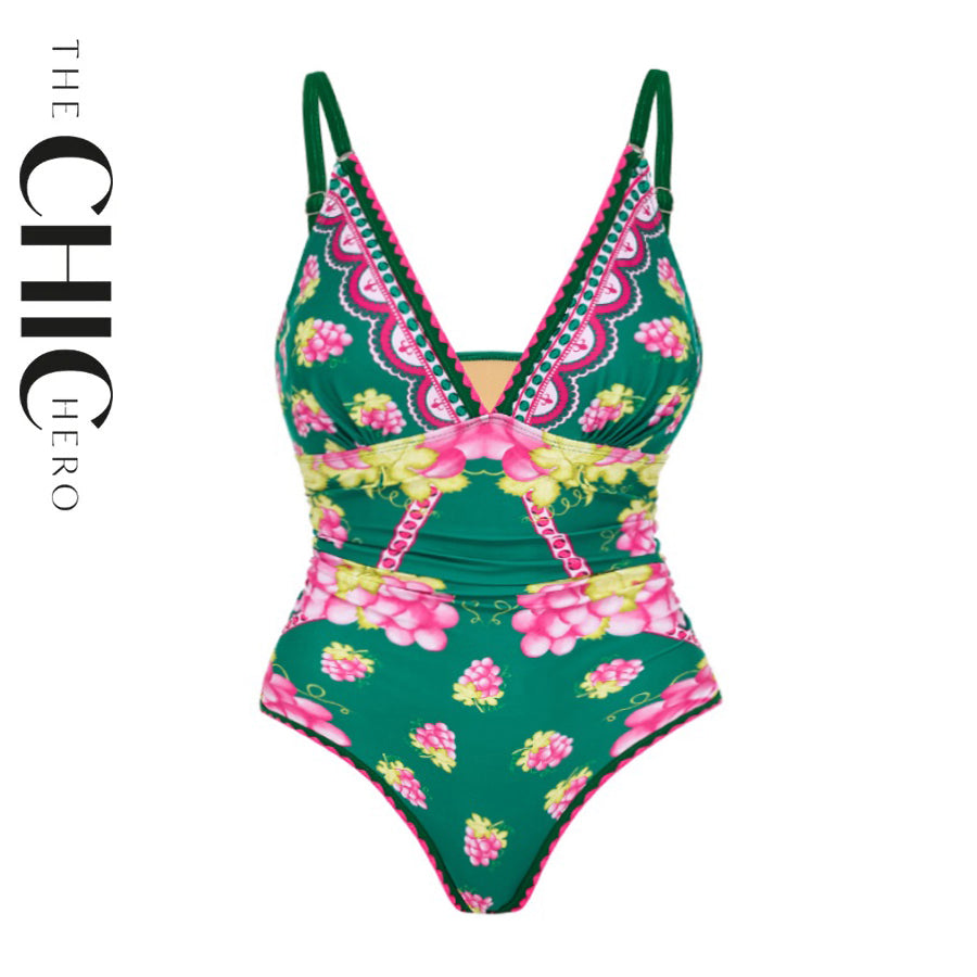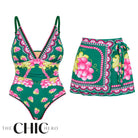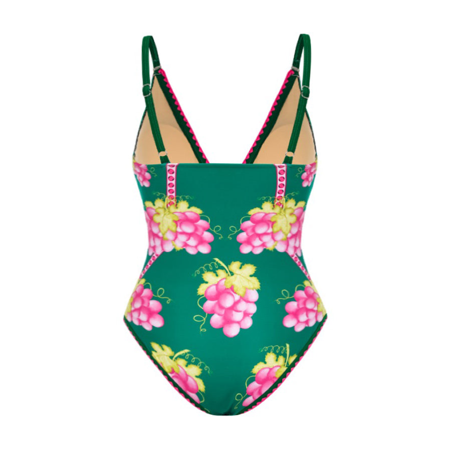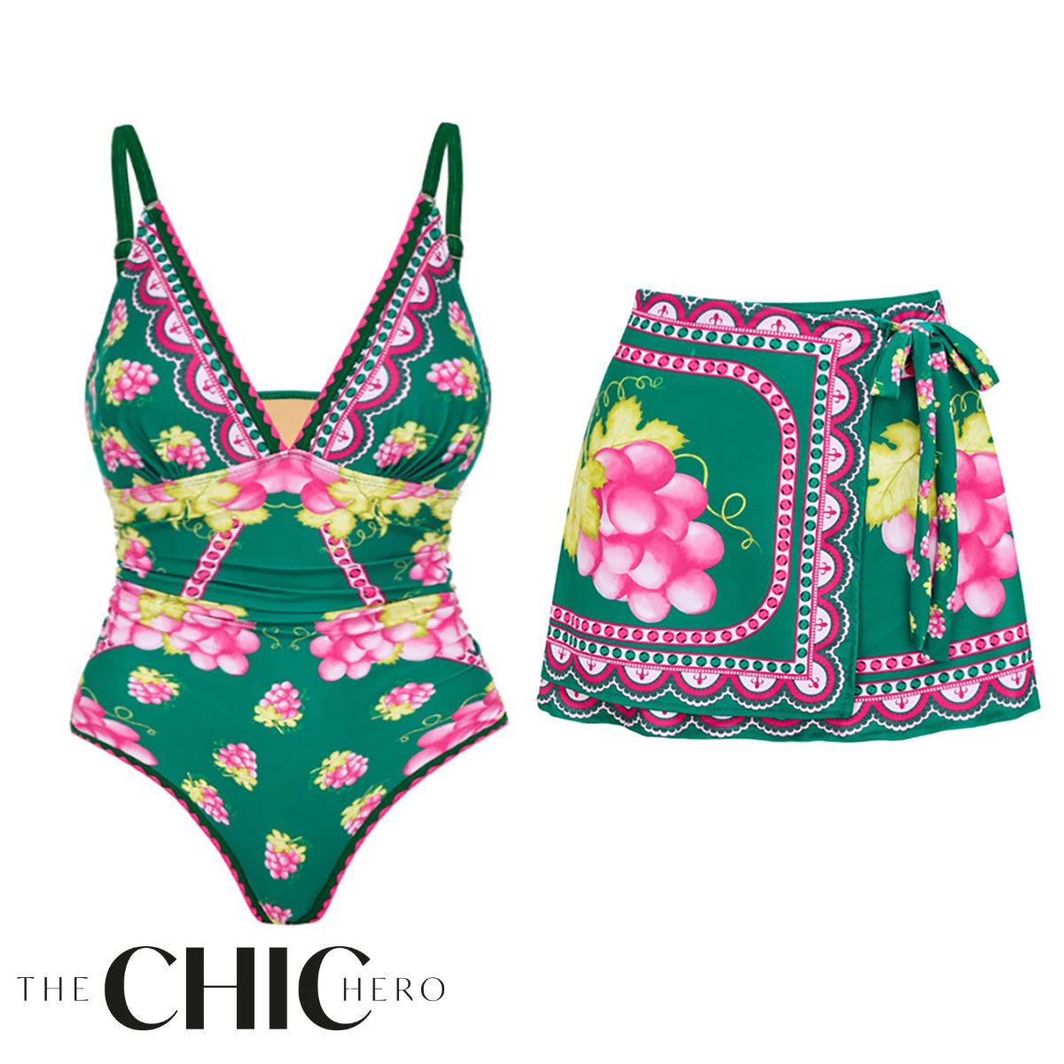 Green Grape Blossom Tropical Vineyard V-Neck Swimsuit & Mini Skirt