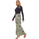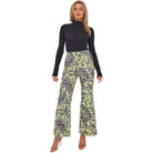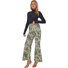 Green Leopard Pattern Wide-Leg High-Waist Flare Palazzo Pants