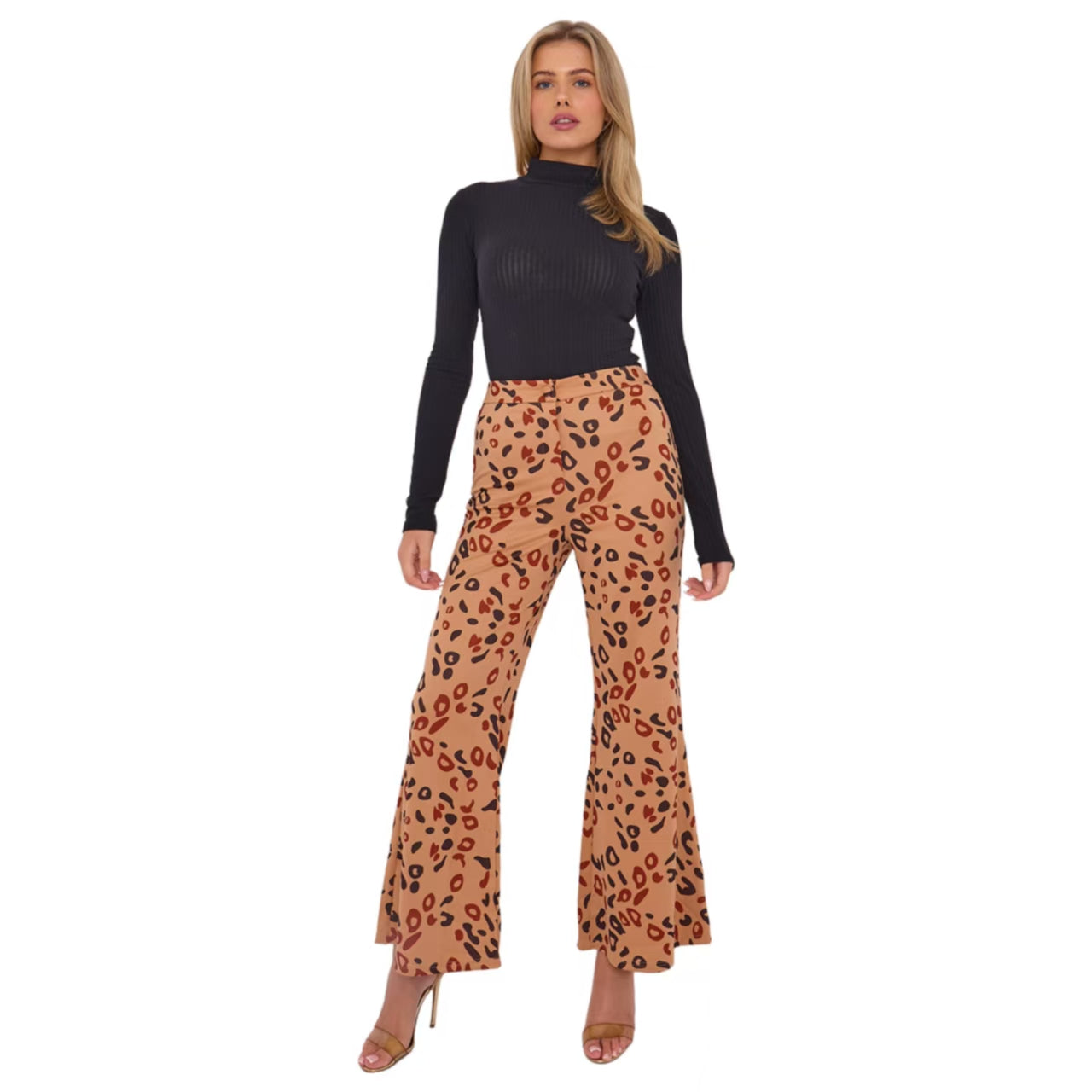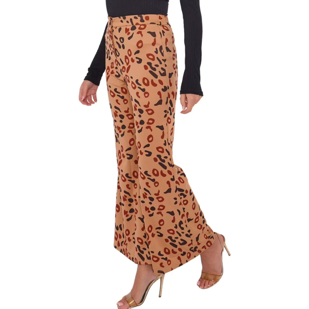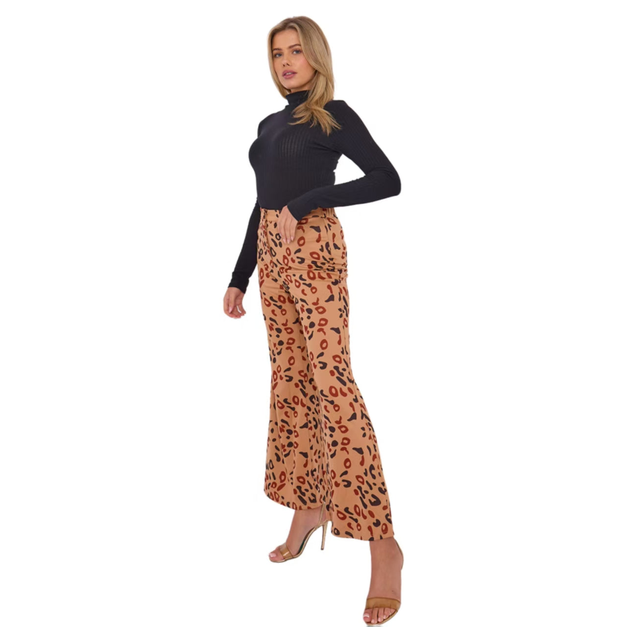 Leopard Animal Print High-Waist Flared Wide-Leg Palazzo Pants