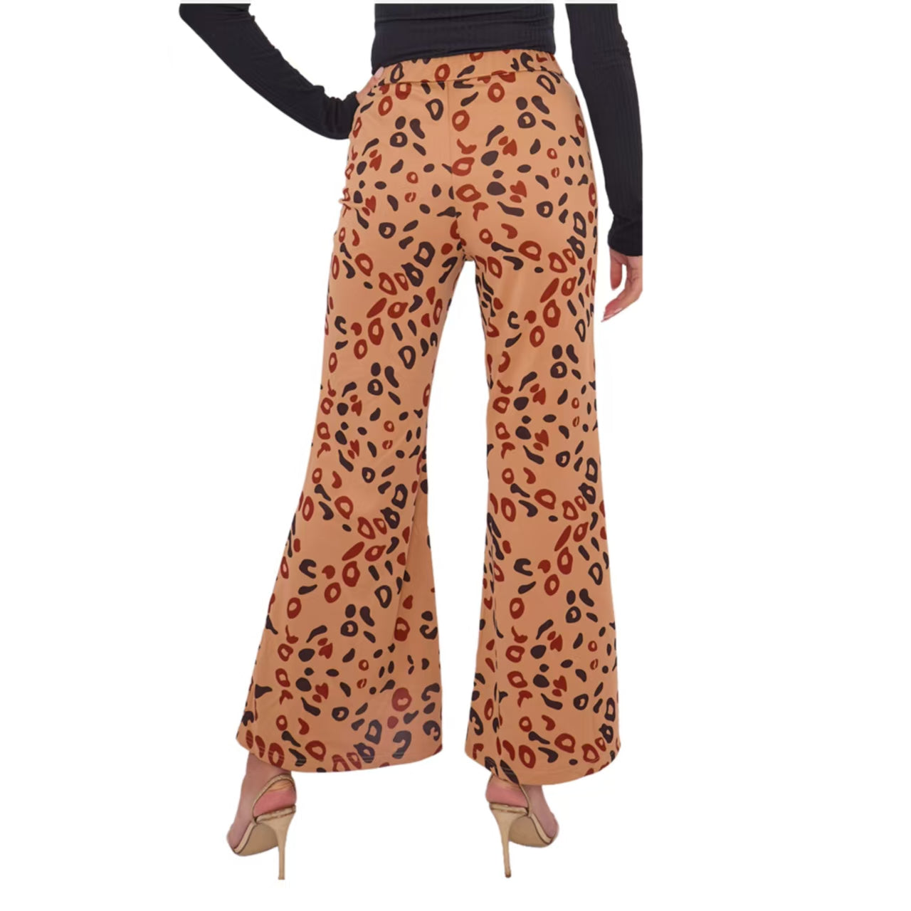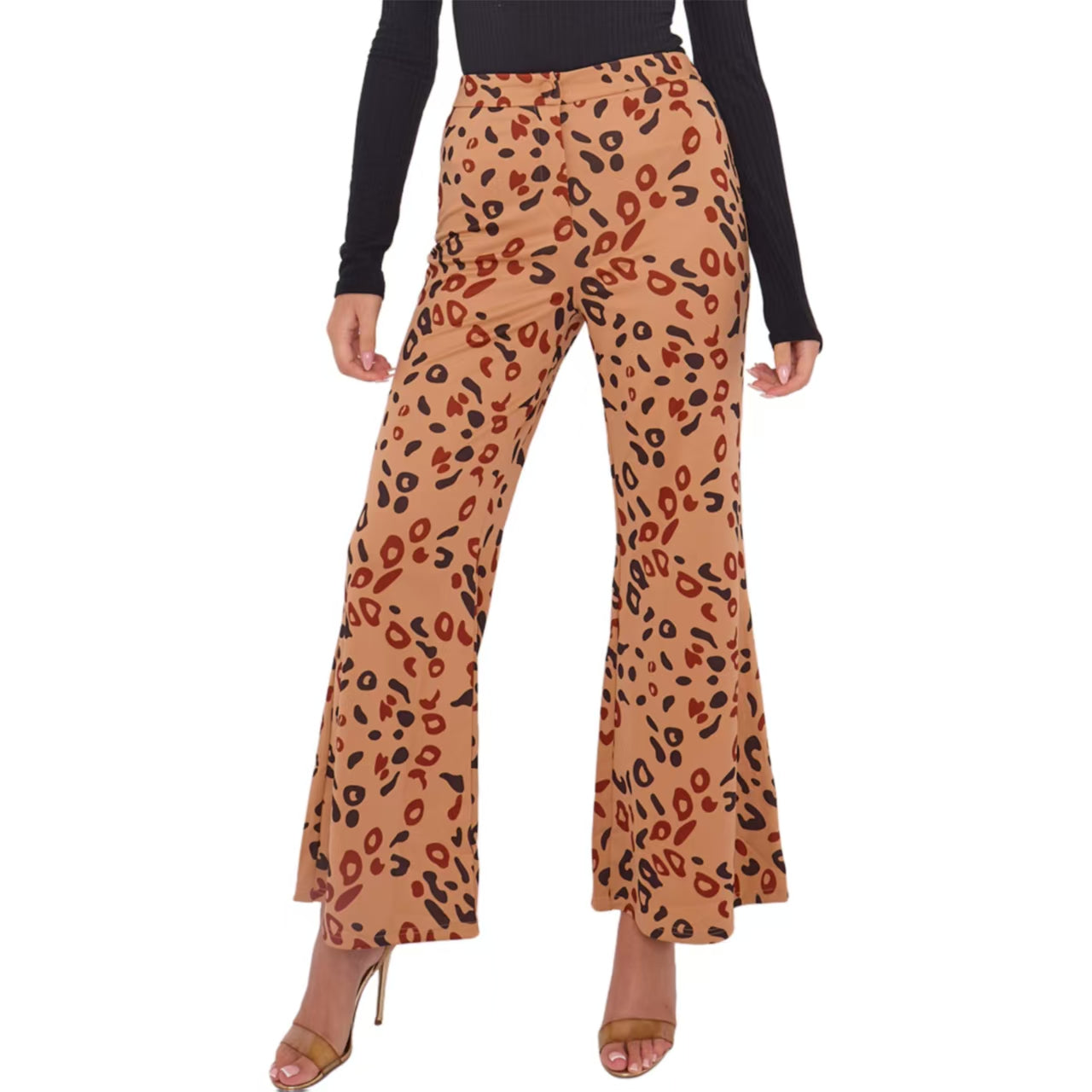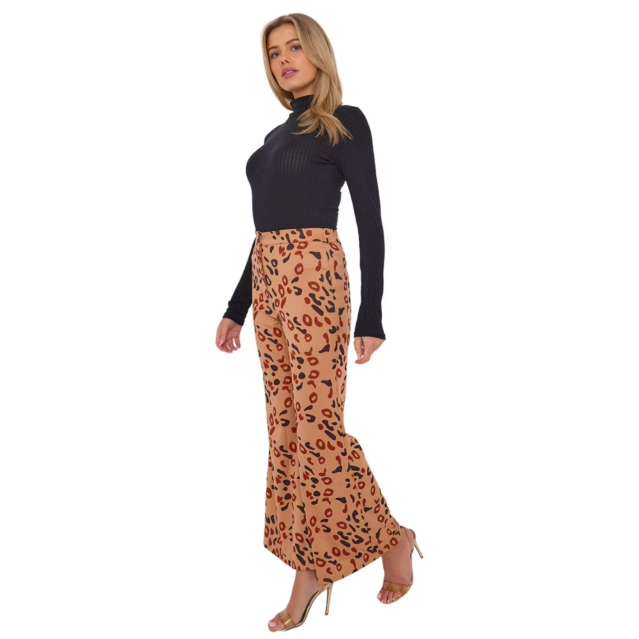 Leopard Animal Print High-Waist Flared Wide-Leg Palazzo Pants