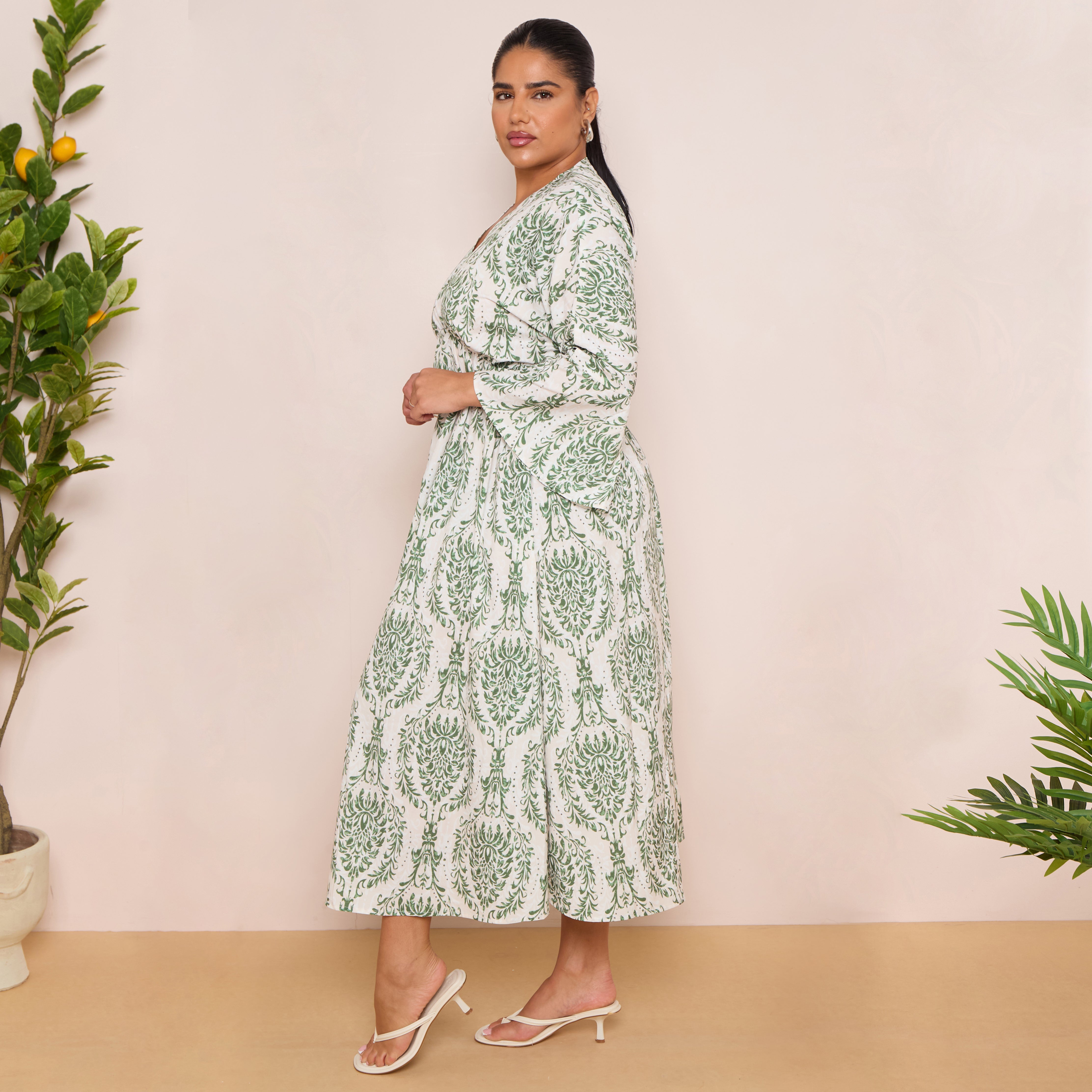 Long Sleeve Swing Maxi Dress in Leaf Print