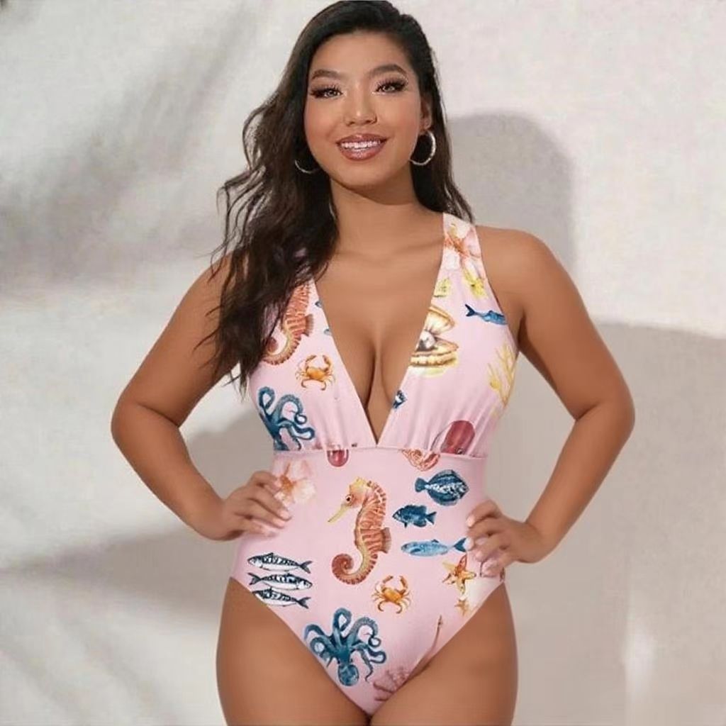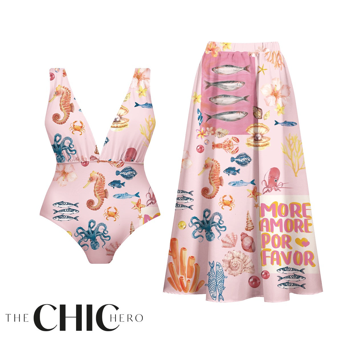 Ocean Love Pink Sea Life One-Piece Swimsuit&Skirt