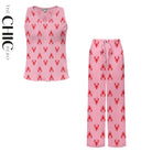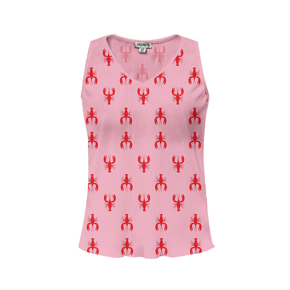 Pink Crayfish V-Neck Vest Top & Pleated Pants