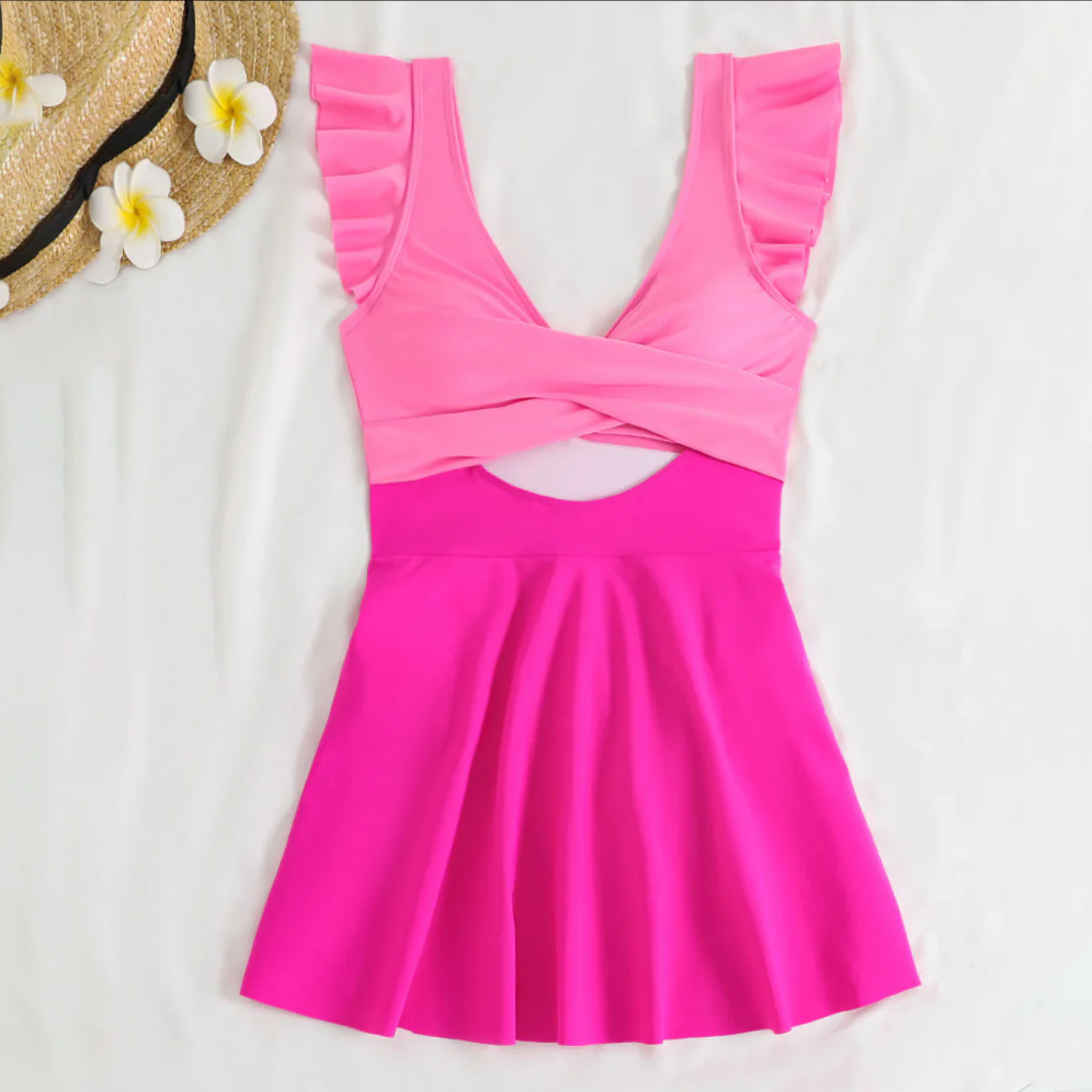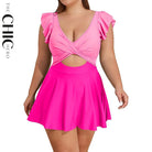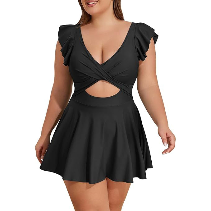Plus Size Cutout Two-Tone Ruffle Swimsuit