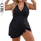 Plus Size Criss Cross Swim Dress One Piece Swimsuit