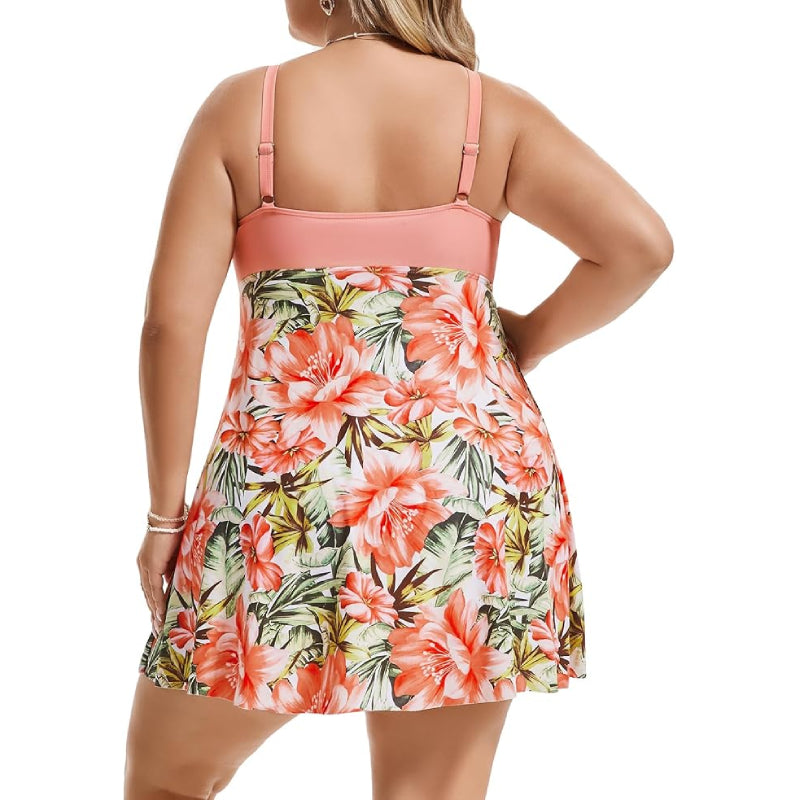Plus Size Tummy Control Floral Printed Swimsuits