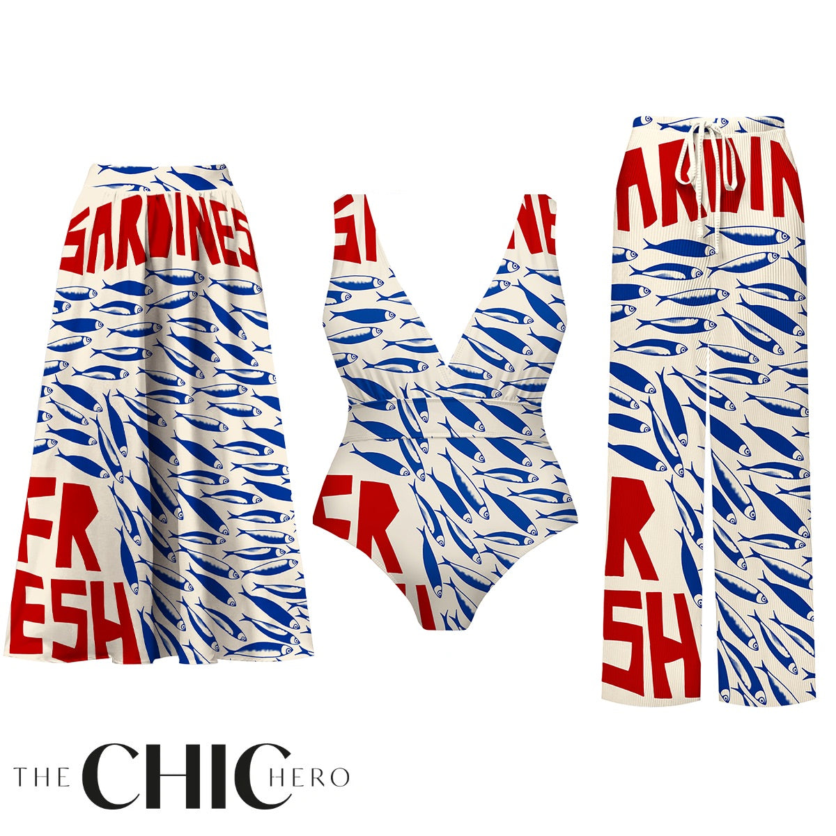 Pop Art Sea Vibes Sardine One-Piece Swimsuit&Skirt&Pants