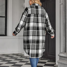 Comfy, casual, and loose fit checked mid-long flannel coat for women, suit for spring, autumn, and winter.