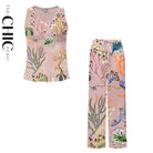 Sea-Inspired Tropical Reef Print V-Neck Vest Top & Pleated Pants