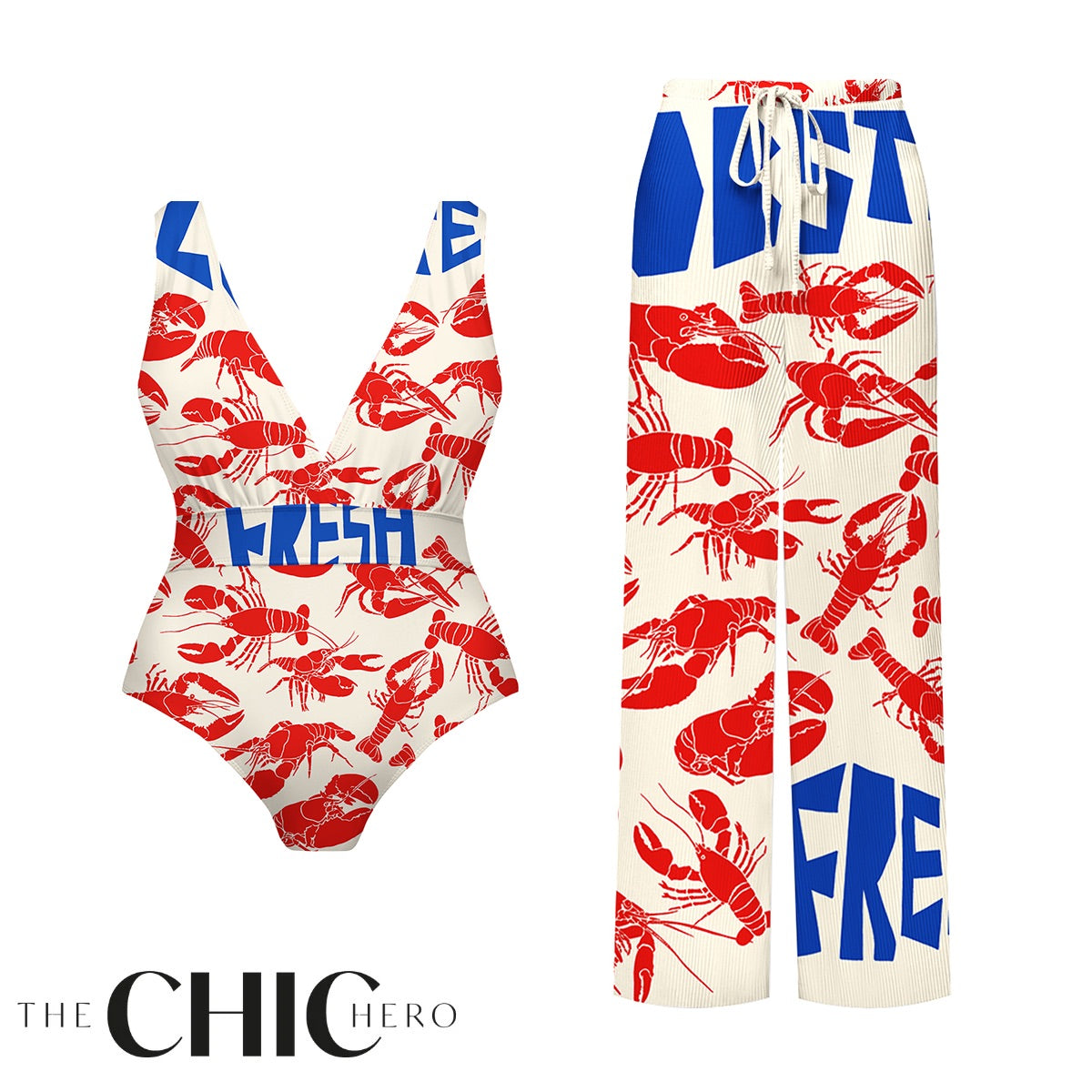 Seafood Lobster Crustacean Chic One-Piece Swimsuit&Pants
