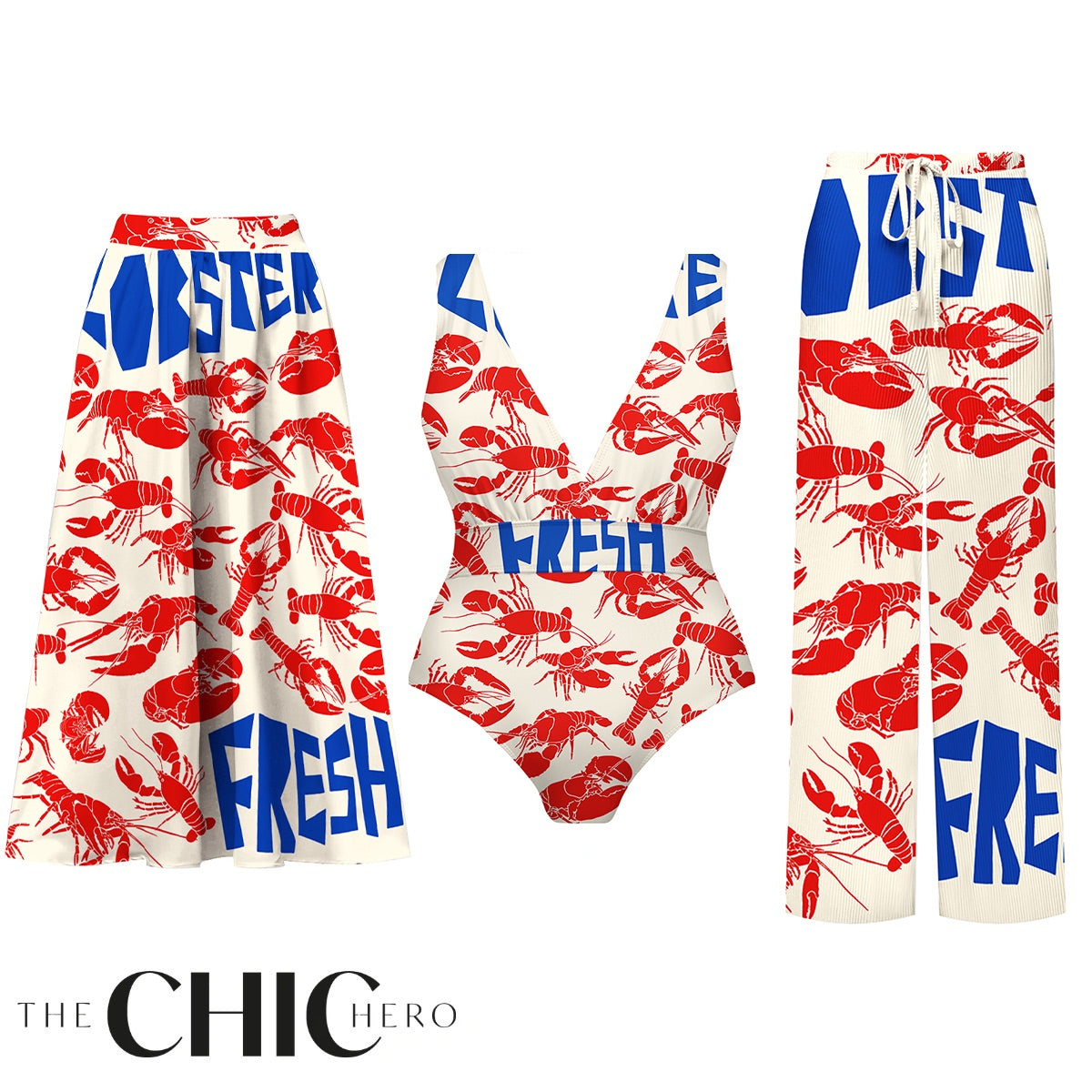 Seafood Lobster Crustacean Chic One-Piece Swimsuit&Skirt&Pants