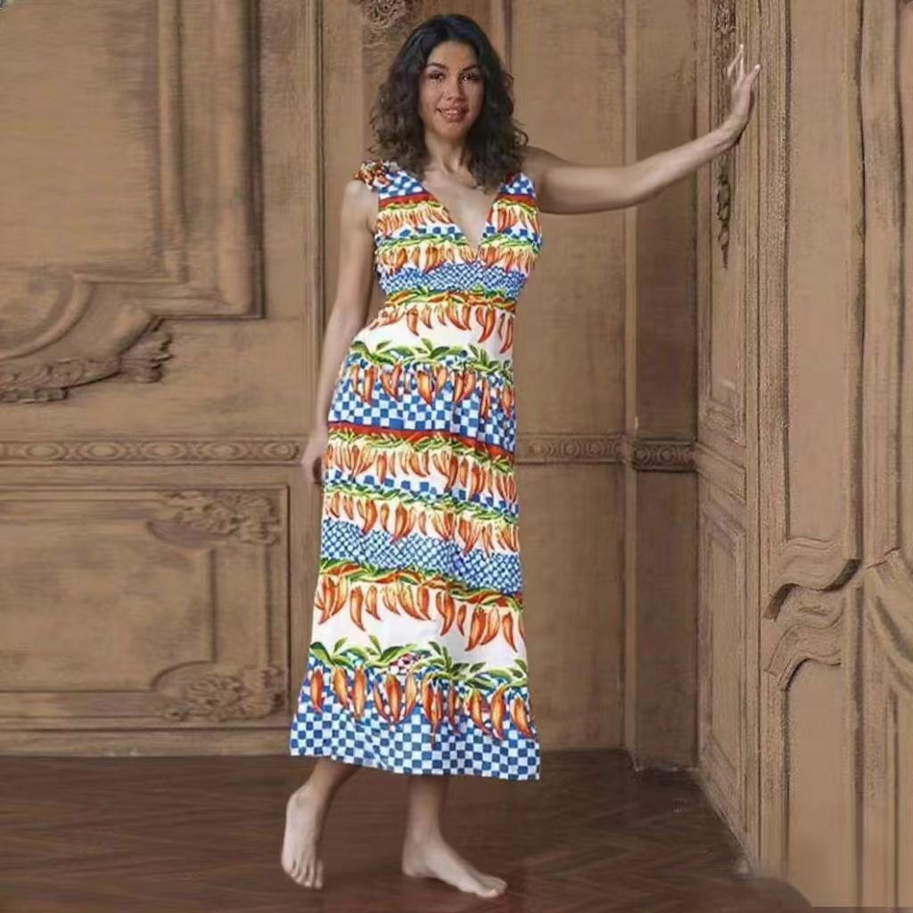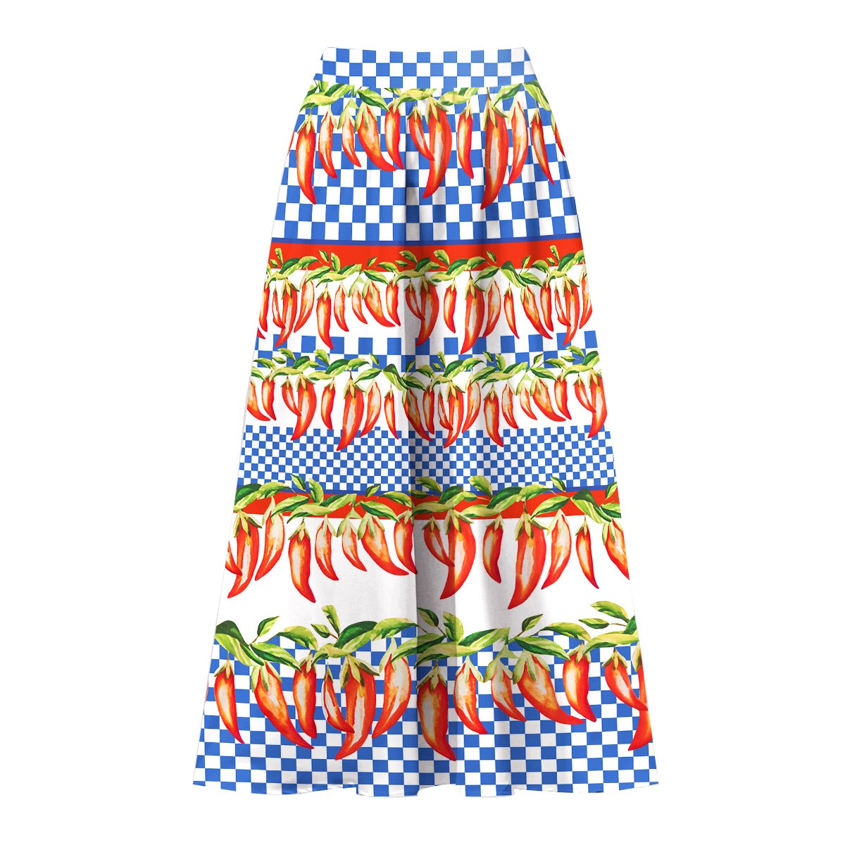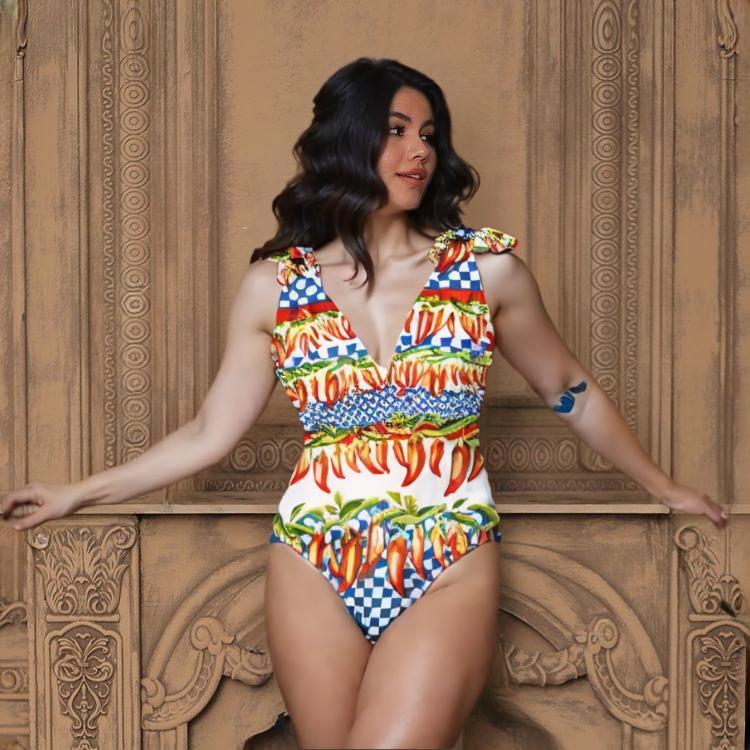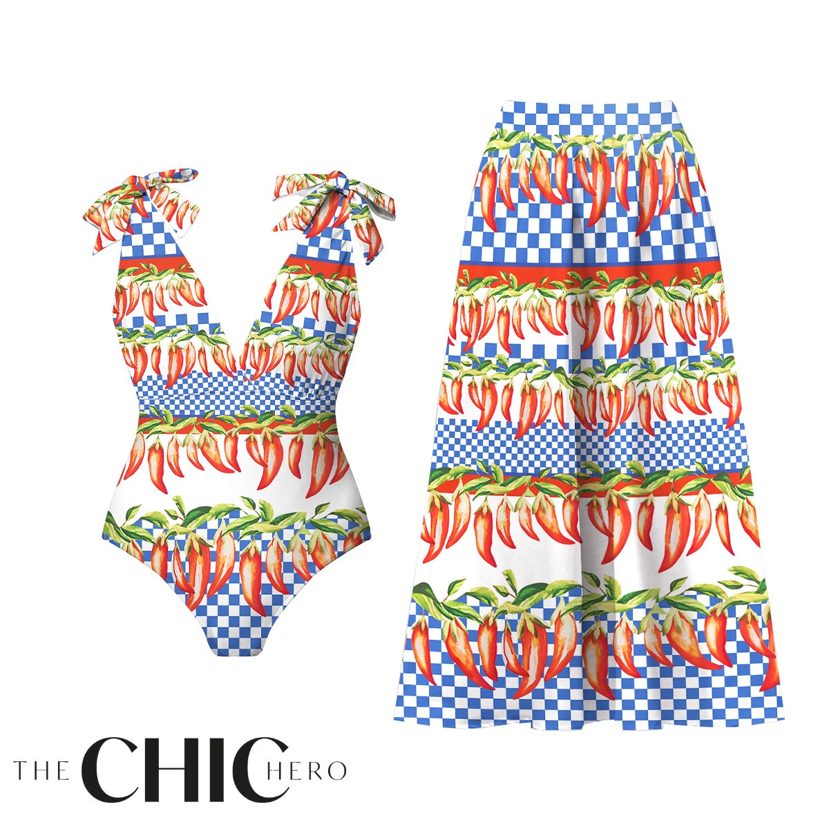 Spicy Pepper Checkerboard Print One-Piece Swimsuit&Skirts