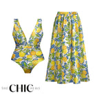Summer Lemon Citrus Print One-Piece Swimsuit&Skirt
