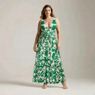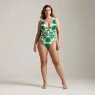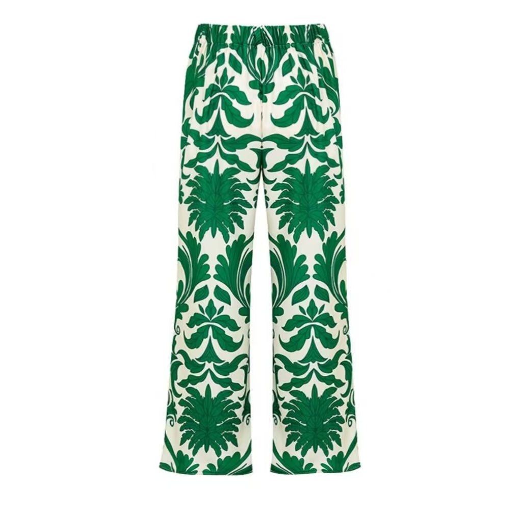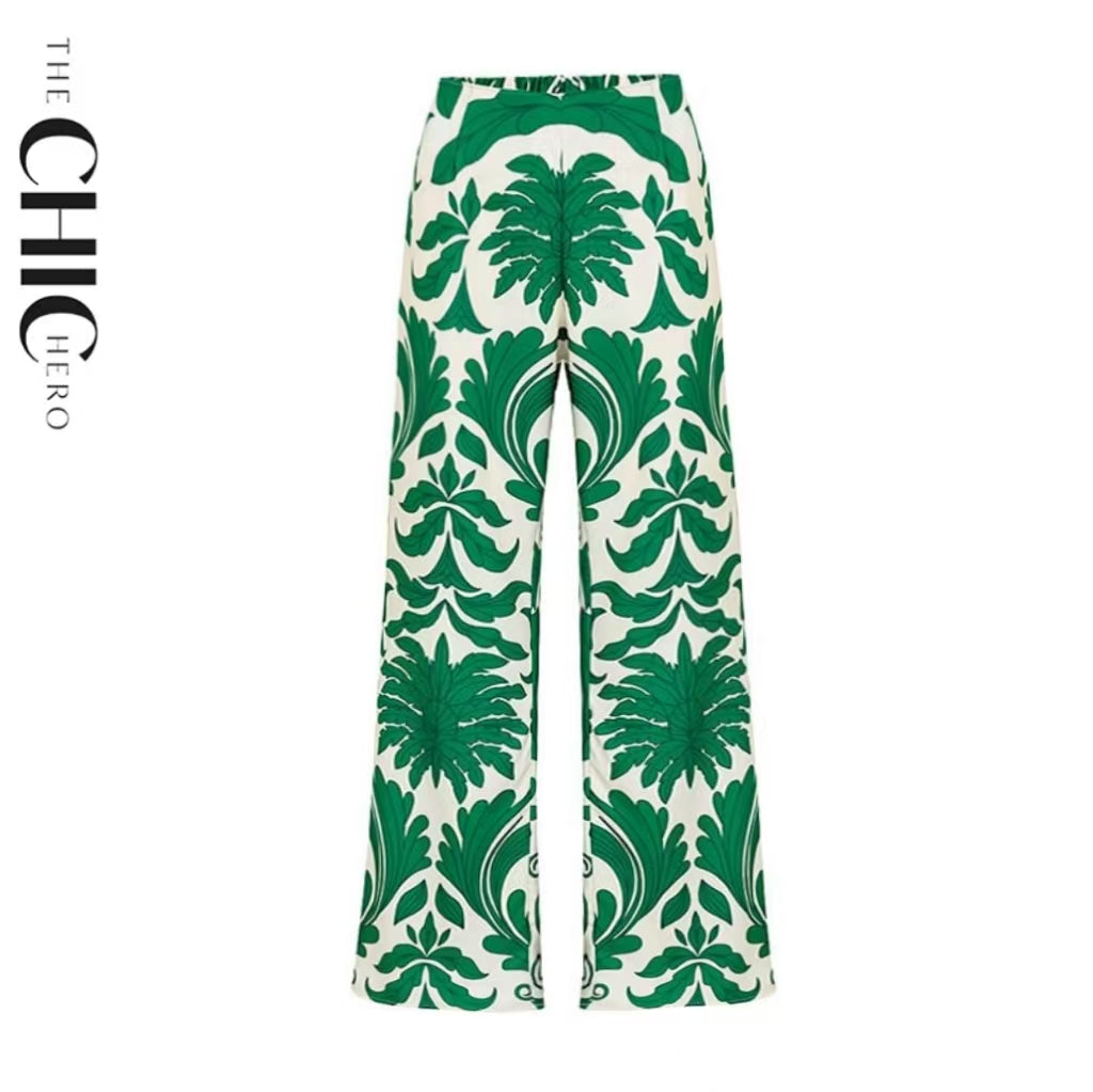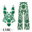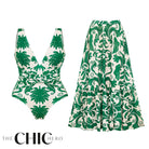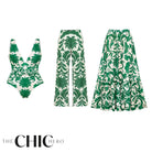V Neck Emerald Green Botanical Print Swimsuit&Skirt&Pants