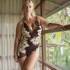 Retro Mesh Sheer Sarong Wraps V Neck One-Piece Swimsuit