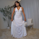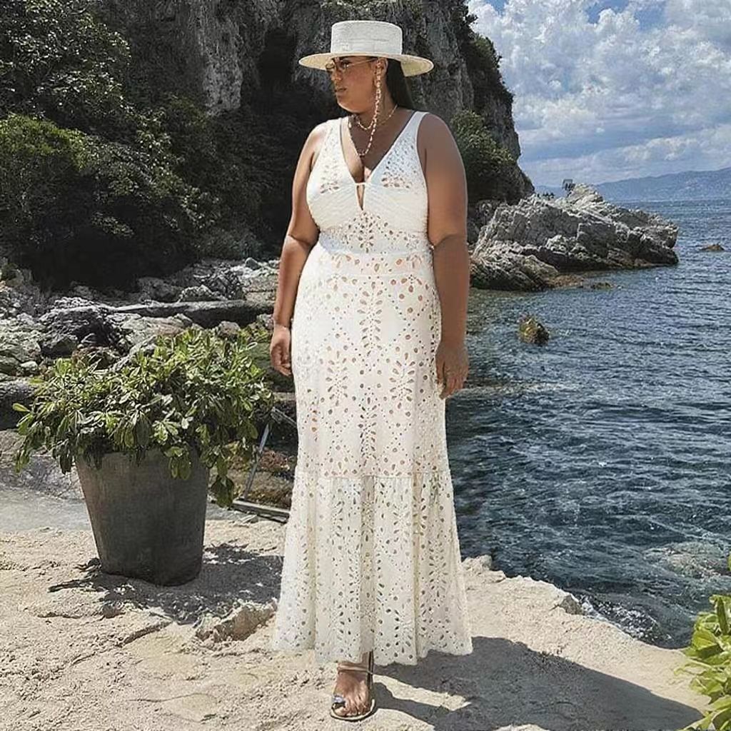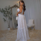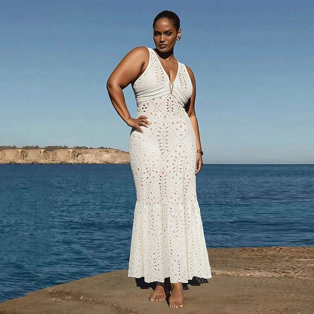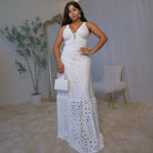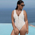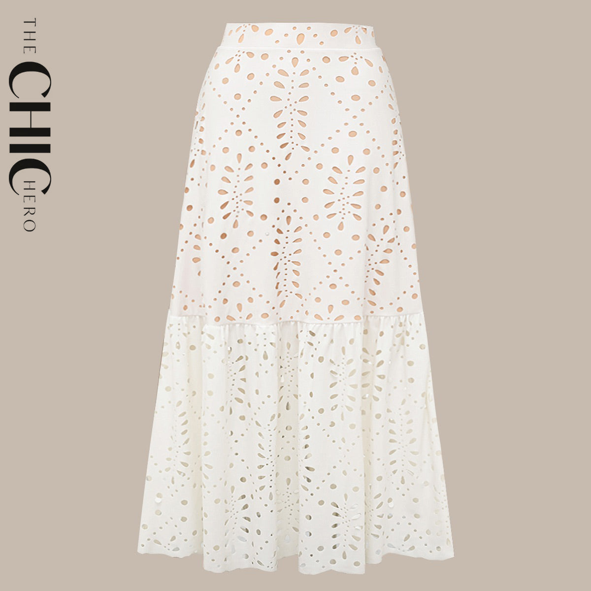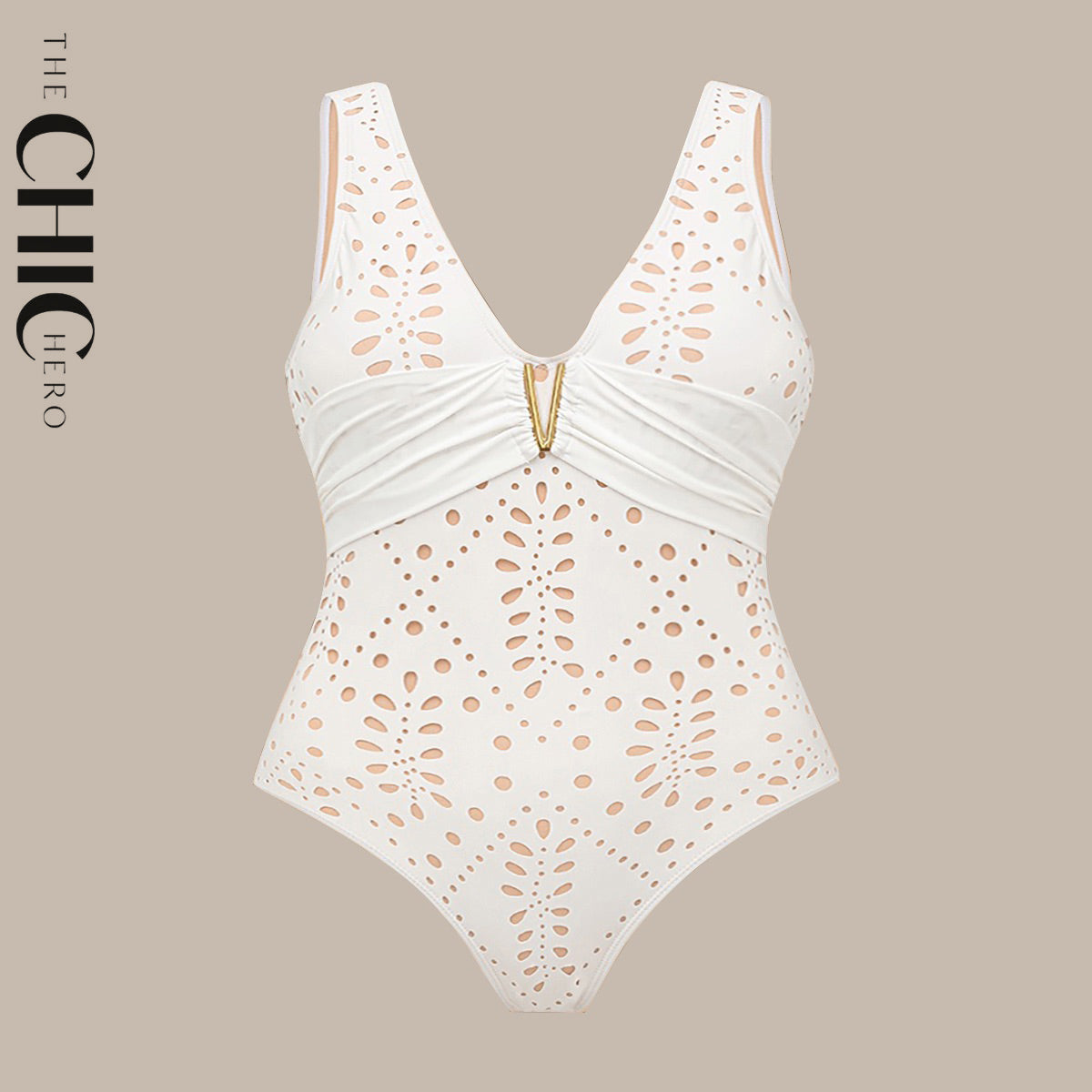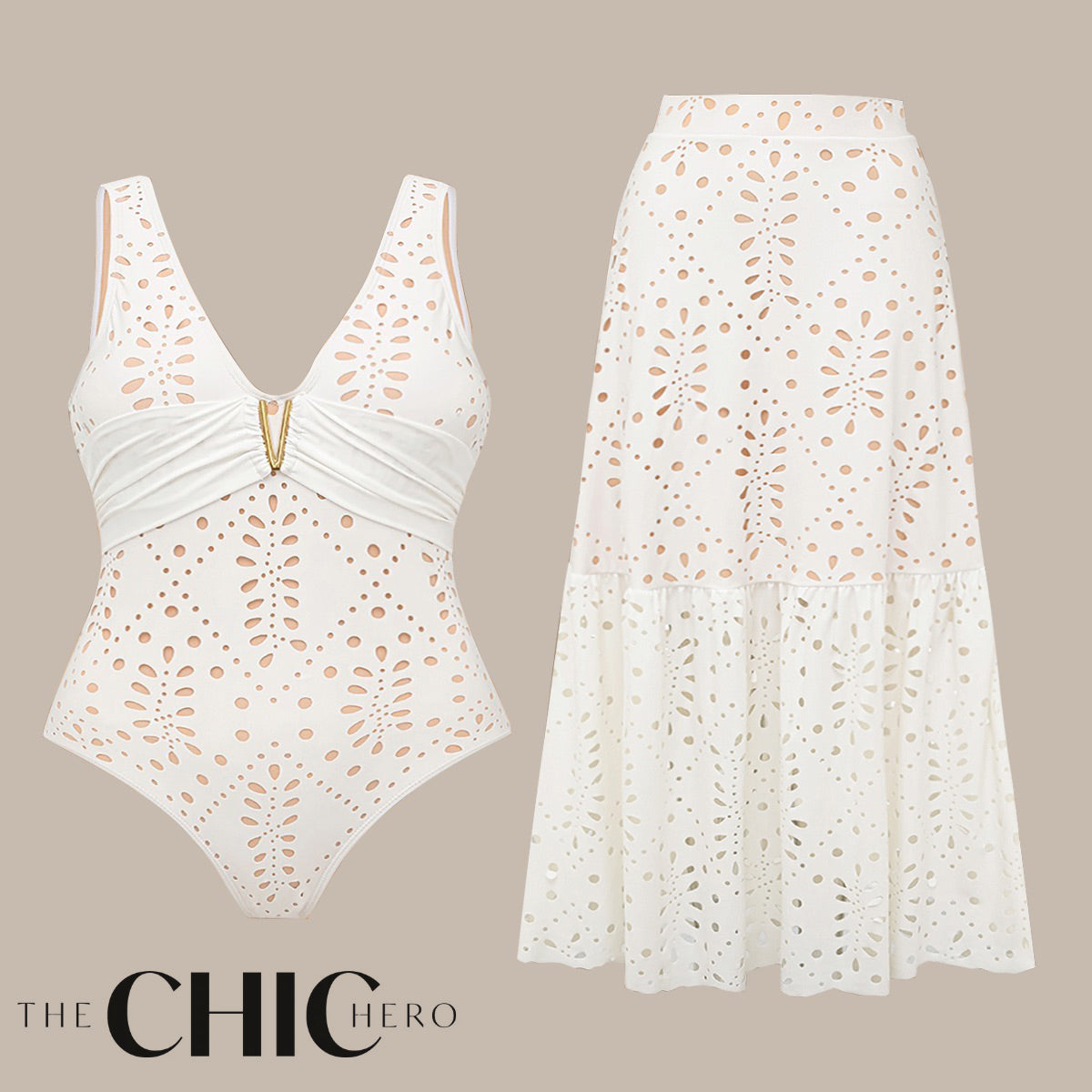 White Petal Hollow One-Piece V Neck Swimsuit&Skirt