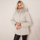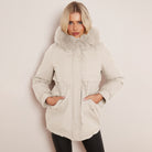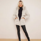 White Chic Parka Faux Fur Hood Puffer Jacket with Fur Collar