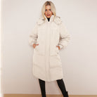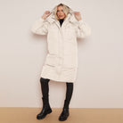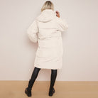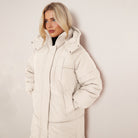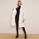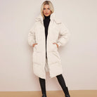 White Long Puffer Coat with Faux Fur Hood Longline Puffer Jacket