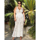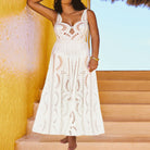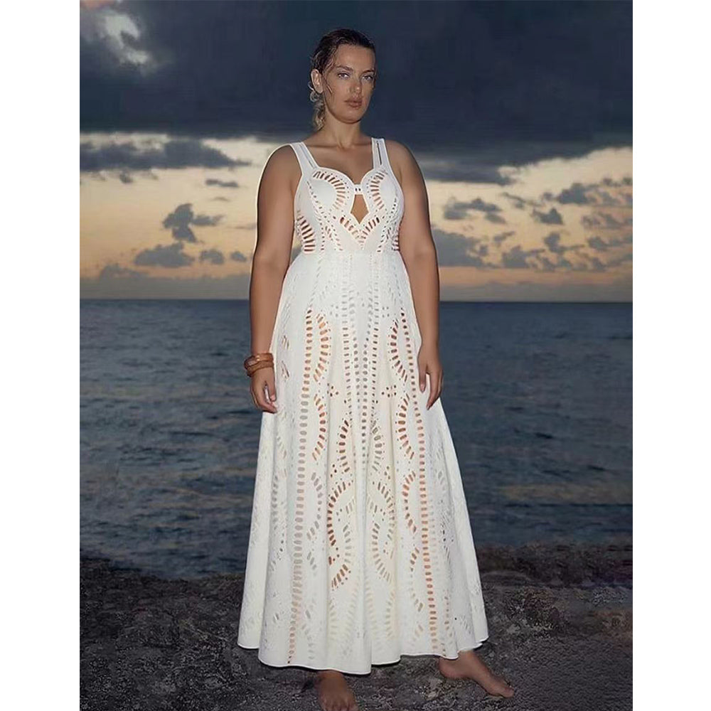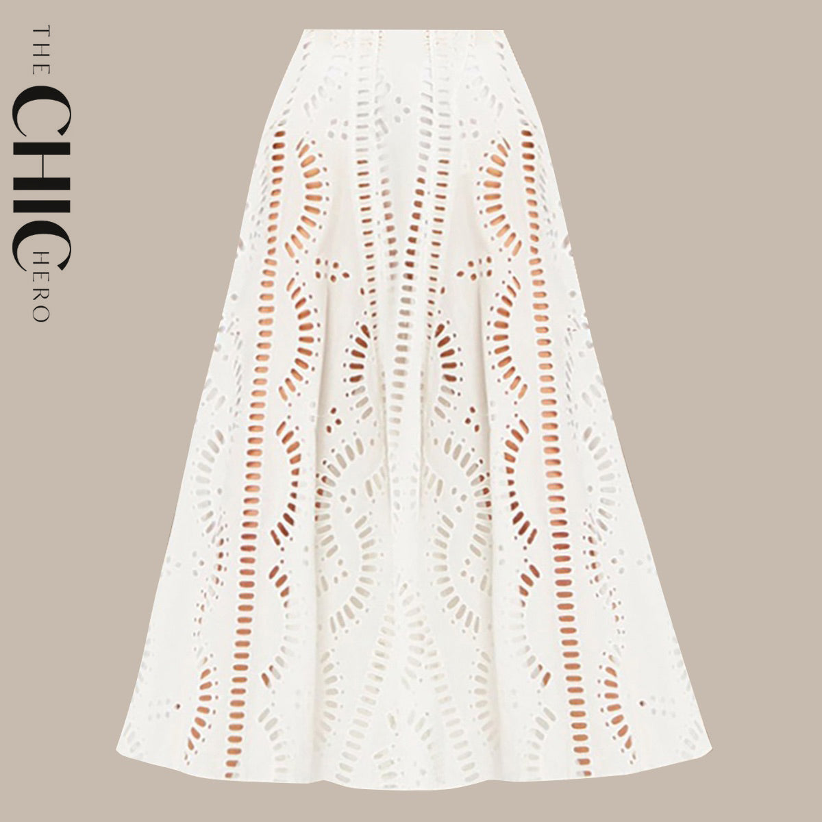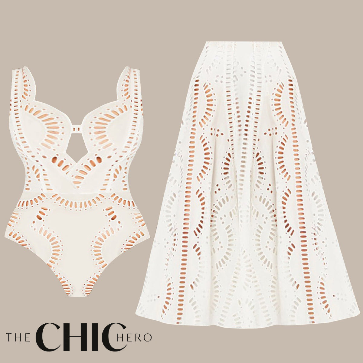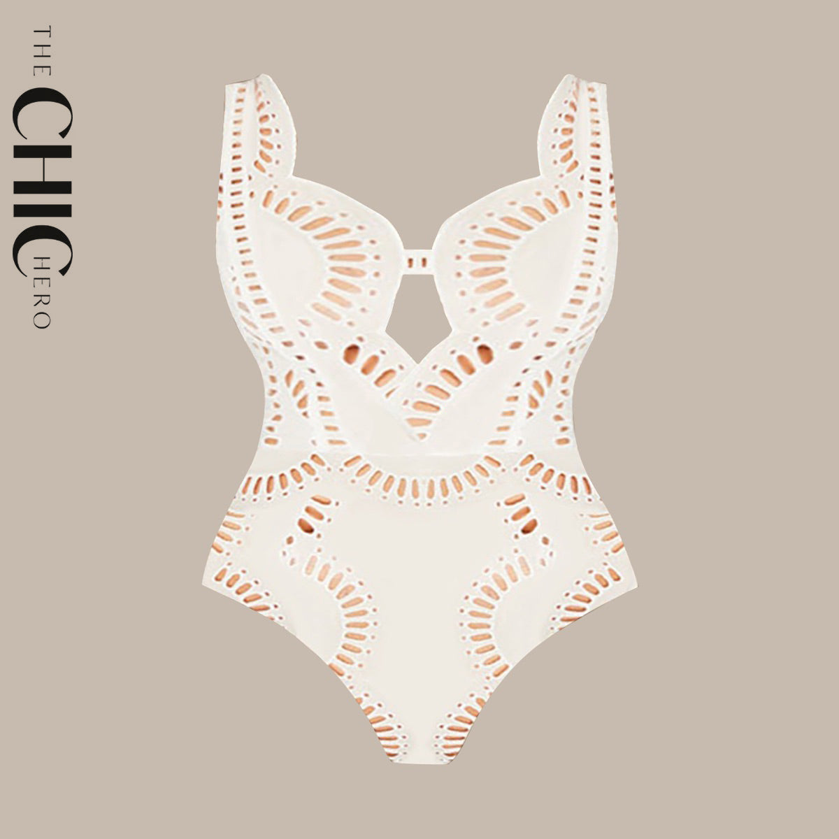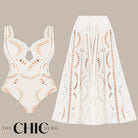 White Sexy Petal Hollow One-Piece V Neck Swimsuit&Skirt