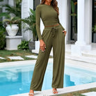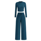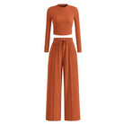 Women's 2-Piece Ribbed Knit Lounge Set-Long Sleeve Crop Top&Wide Leg Pants