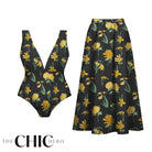 Yellow Floral Print One-Piece Swimsuit&Skirt