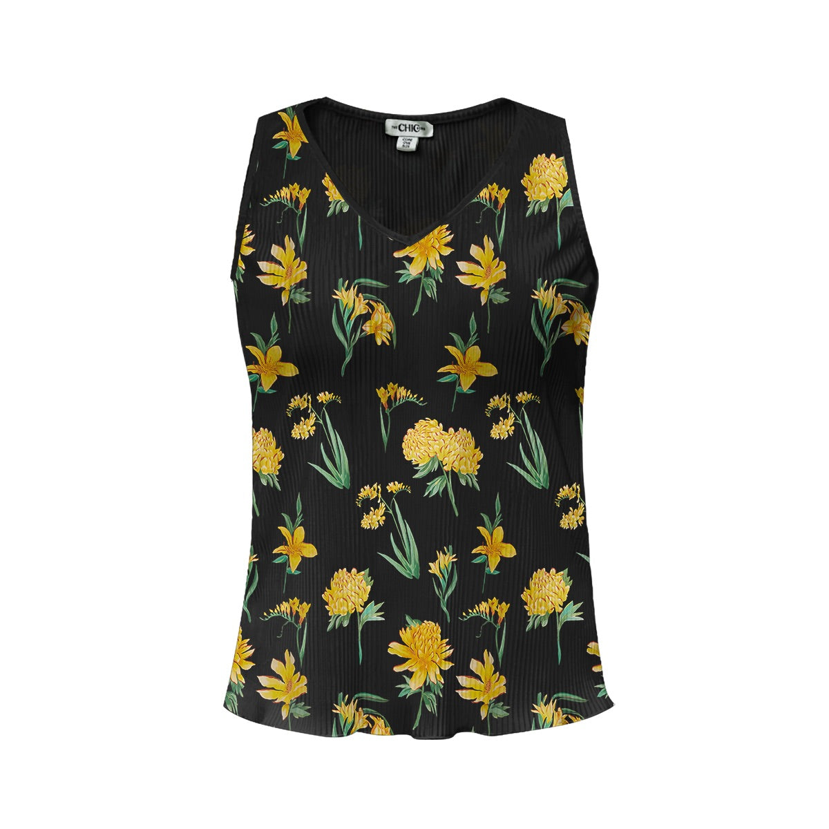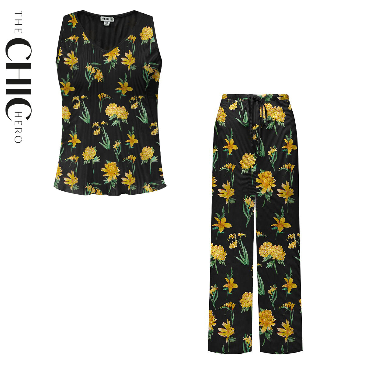 Yellow Floral Print V-Neck Vest Top & Pleated Pants