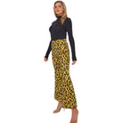 Yellow Leopard Print Abstract Print Flared High-Waist Slim-Fit Pants