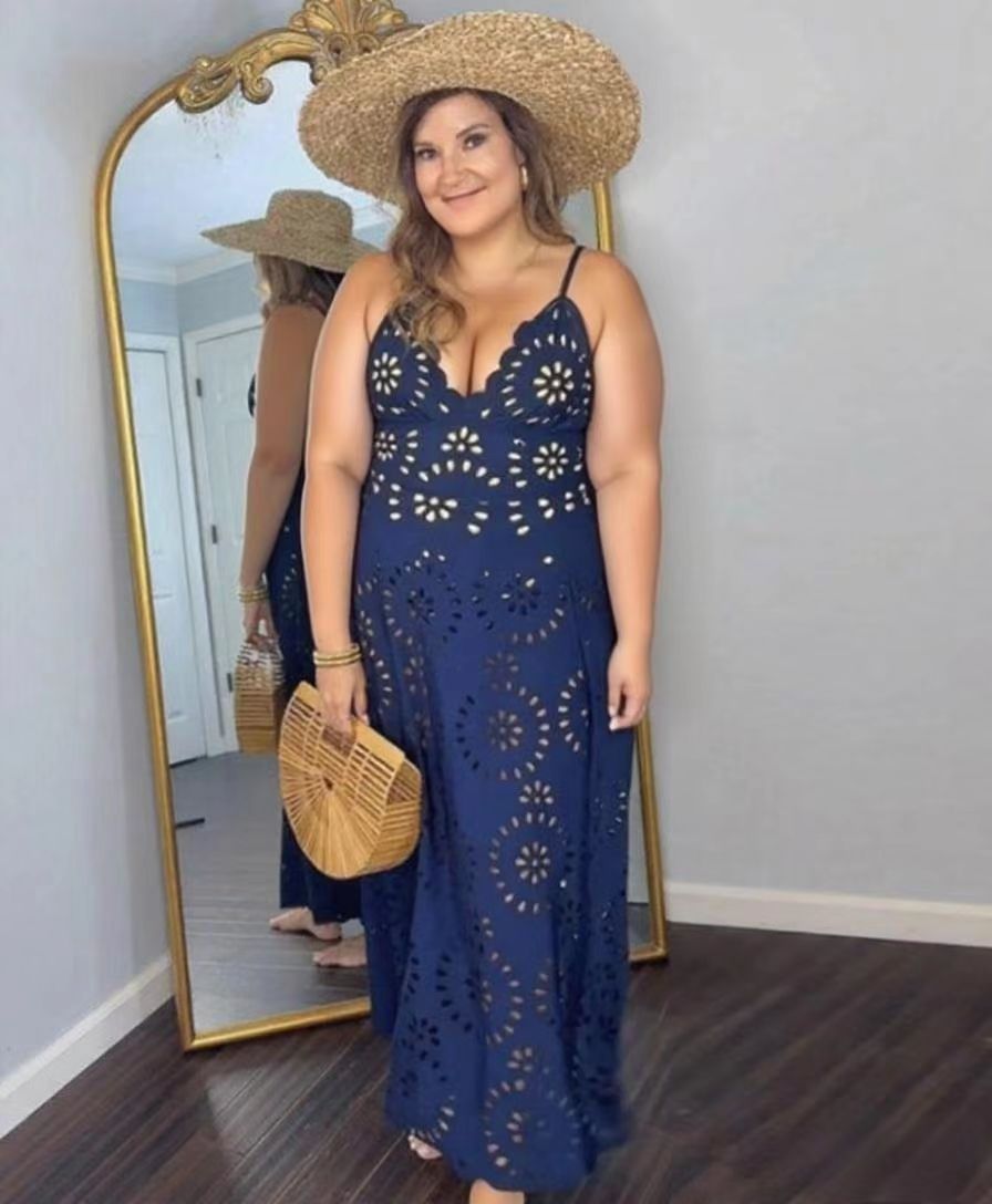 Blue Scalloped Hollow Sexy One-Piece Swimsuit&Skirt